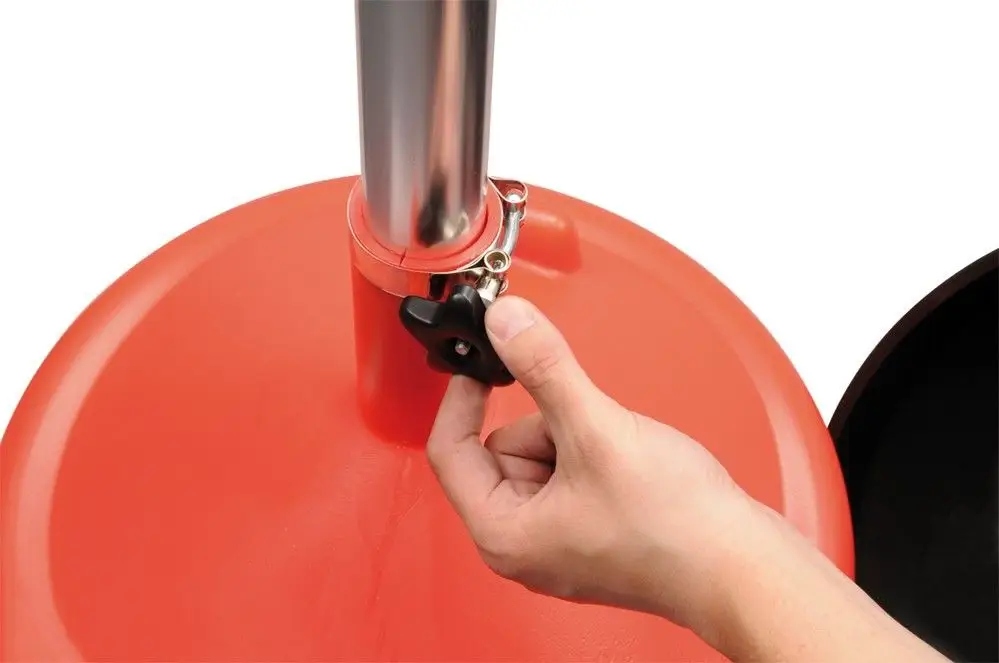 ✅ Имеет широкий сливной поддон диаметром 420 мм б > закончена защитной решеткой, облегчающей слив масла, и 20-литровым баком, дополнительно оснащенным поворотными колесами для облегчения перемещения дозатора на рабочем месте.
