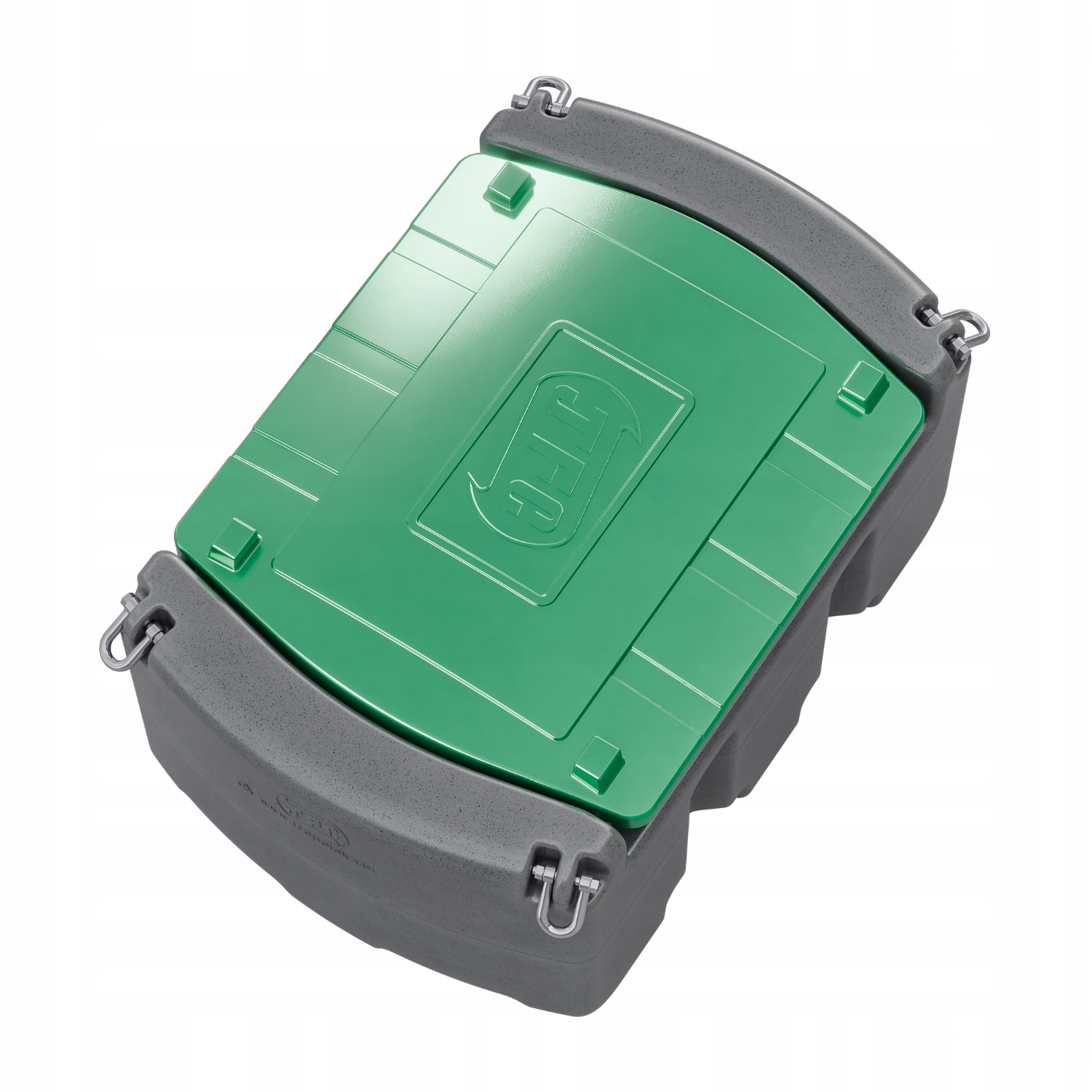 Банк изготовлен из полиэтилена MDPE, устойчивого к ультрафиолетовому излучению, имеет ребра, стабилизирующие топливо при транспортировке, и защищен от опрокидывания. Лючок с замком защищает распределительную систему от несанкционированного доступа.