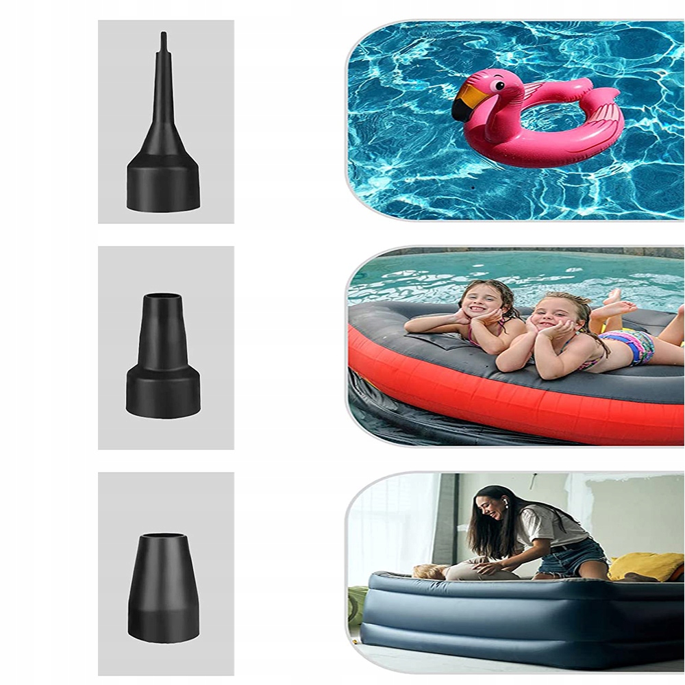 Электрический воздушный насос подходит для надувных матрасов, бассейнов, водяных слоев, плавательных колес, пляжных игрушек или других надувных игрушек. Примечание: не подходит для продуктов с игольчатым клапаном, таких как воздушные шары, баскетбольные шарики, шарики для громкости/йоги.