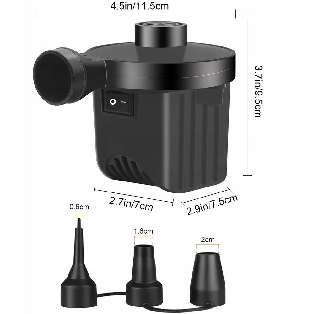 🛶🛶 Электрический воздушный насос, воздушный насос для матрасов, 2 в 1 для перекачки и дренирования воздуха с 3 воздушными соплами для матраса, лодков, пневматических матрасов, бассейнов, плавательных колес, черных 🏖