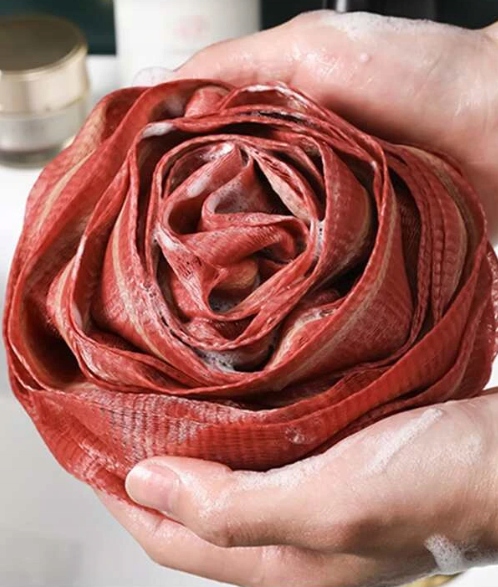 Мочалка в форме розы, губка для ванны - красная