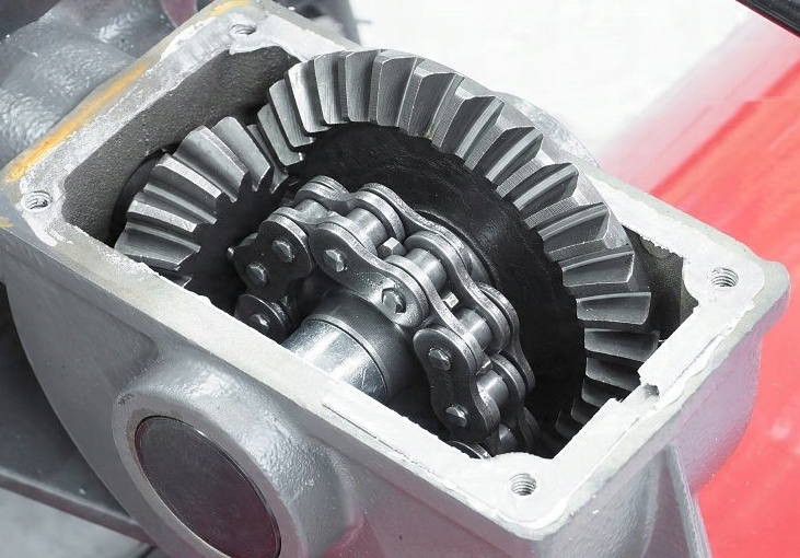Чугунный корпус редуктора гарантирует долговечность передачи и обеспечивает достаточный вес машины.