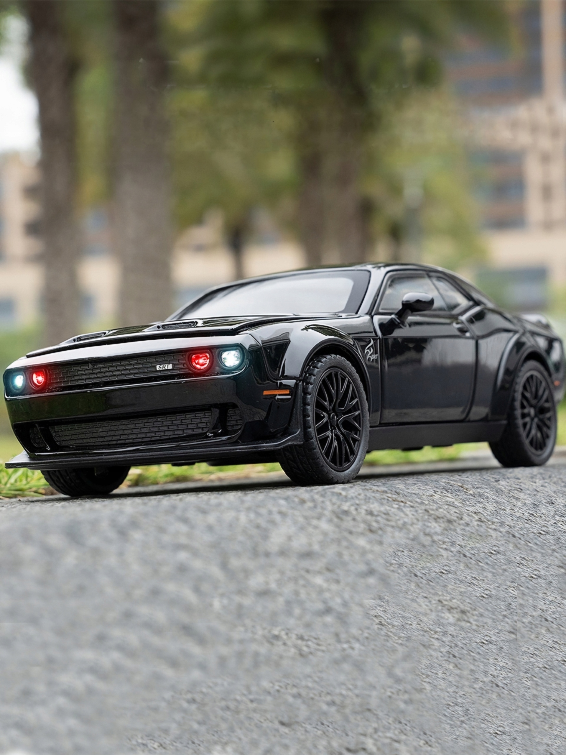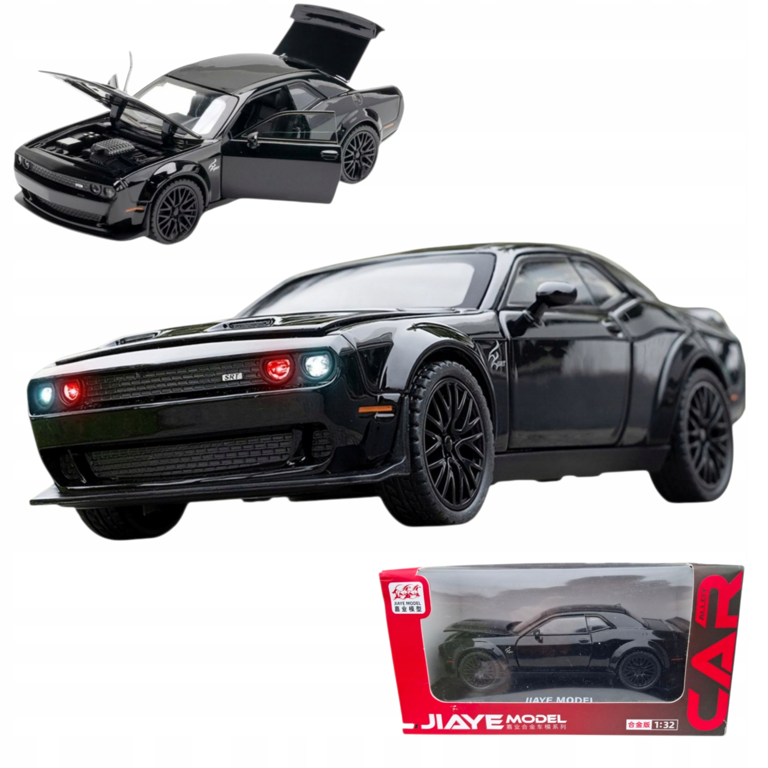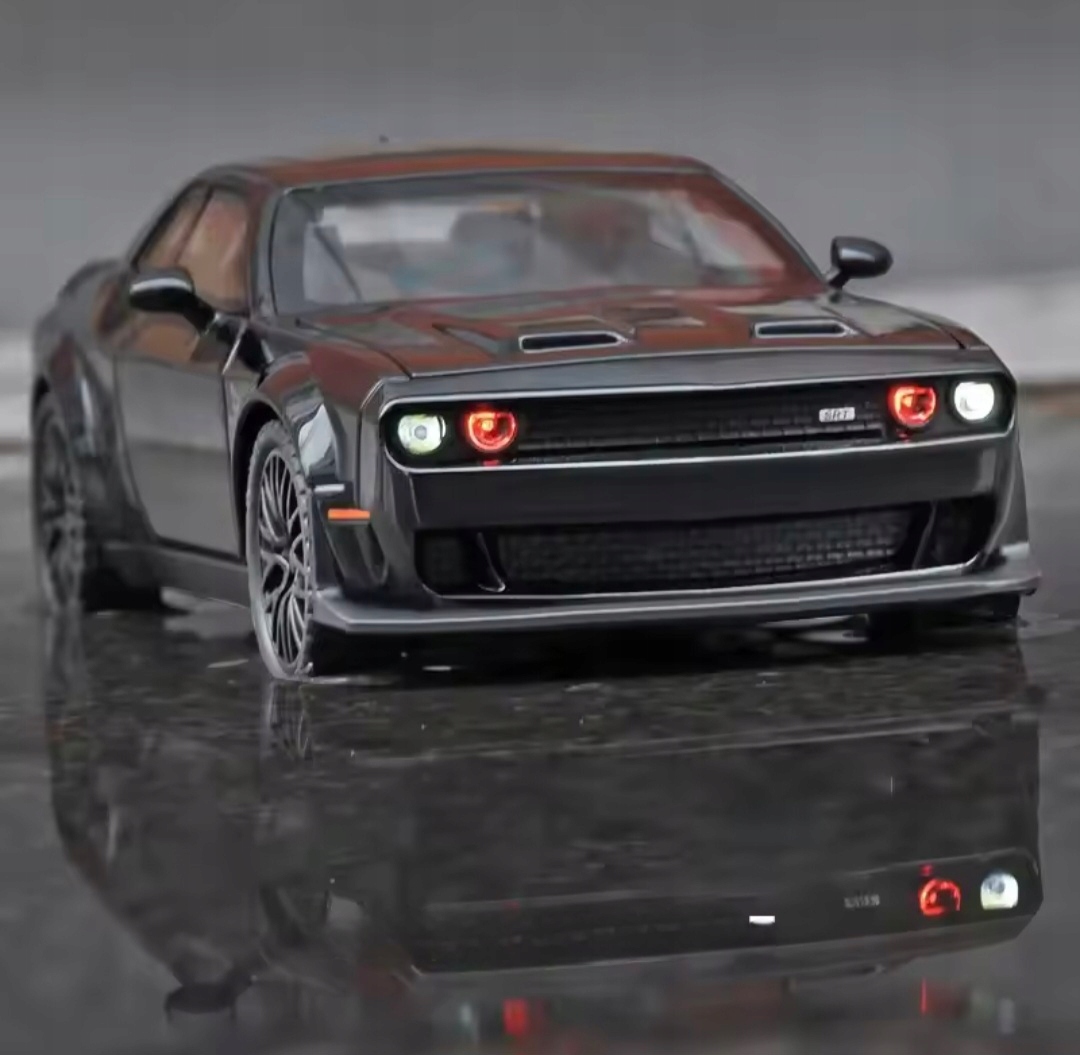 Модель CAR DODGE CHALLENGER 1:32, подставка, светодиодная звуковая маска, люк