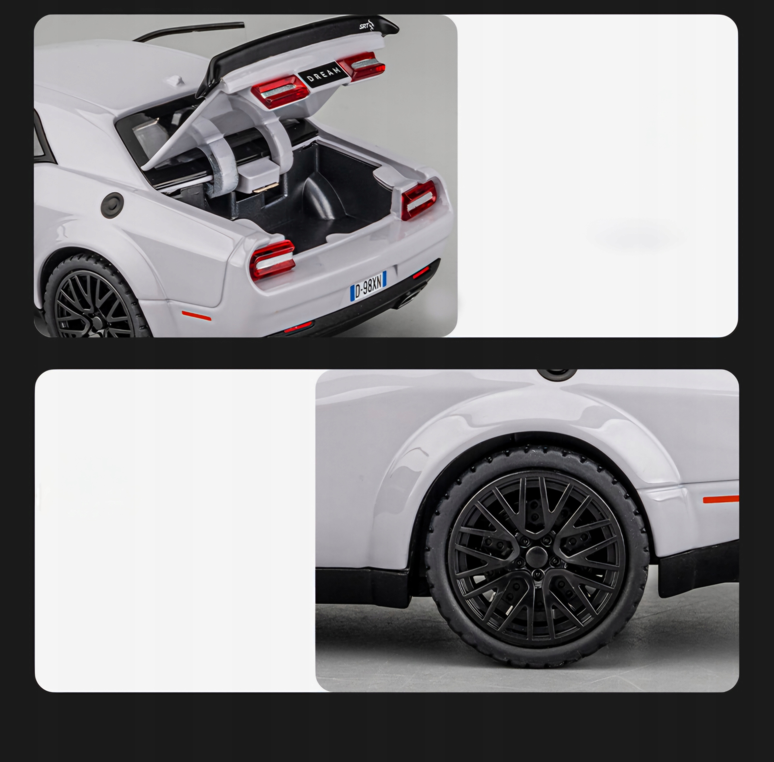 Модель CAR DODGE CHALLENGER 1:32, подставка, светодиодная звуковая маска, люк