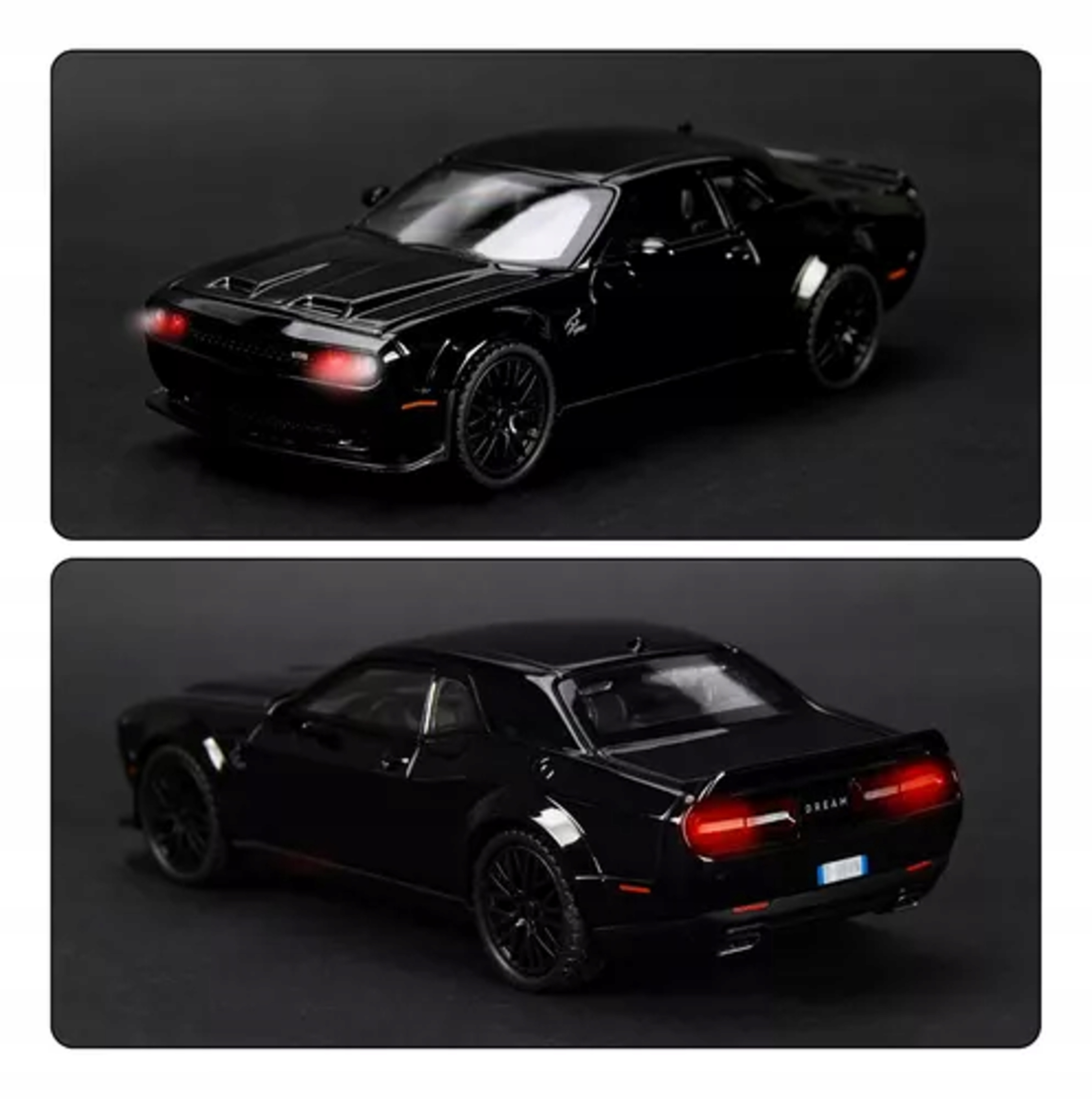 Model DODGE CHALLENGER 1:32 METALOWY | ŚWIATŁA LED, DŹWIĘK, NAPĘD, BATERIE