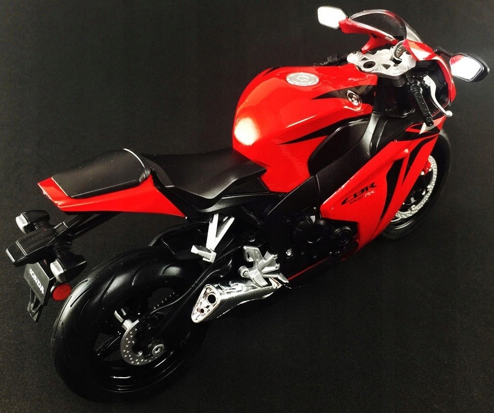 Модель мотоцикла HONDA отличается вниманием к деталям. Имеет подвижные элементы: колеса, руль, задний поворотный рычаг, боковую подставку.