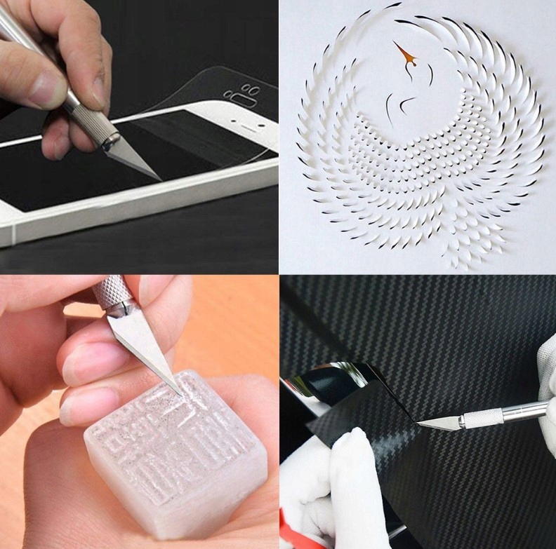 Моделирование ножа - это удивительный инструмент для точных разрезов или моделирования. Благодаря 9 заменяемым лезвиям различных форм и размеров, они чрезвычайно точные. Их тонкое лезвие идеально вписывается даже в самый недоступный уголок. пригласите свой лезвие так, как вы мечтаете, и нож сделает это для вас.