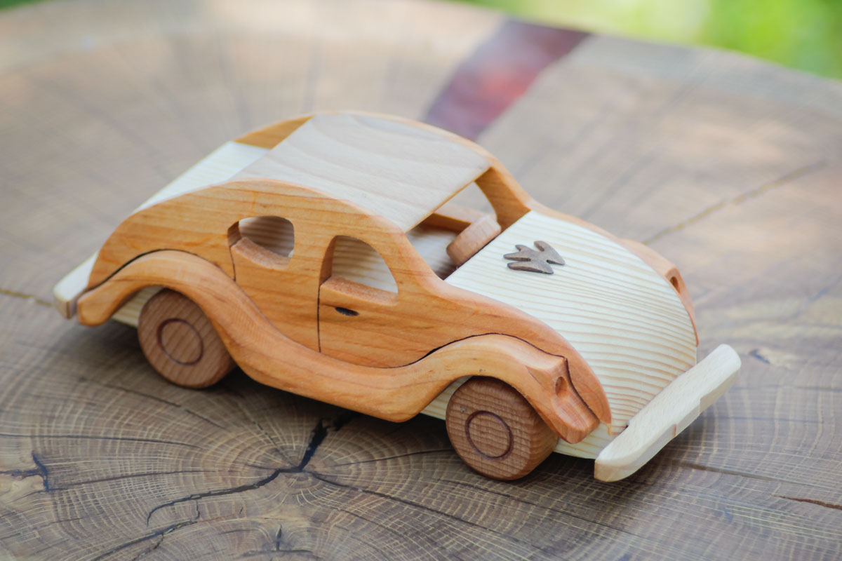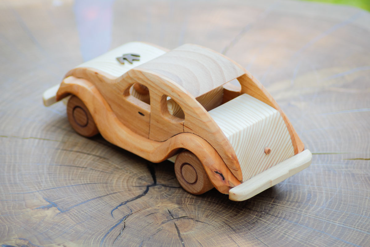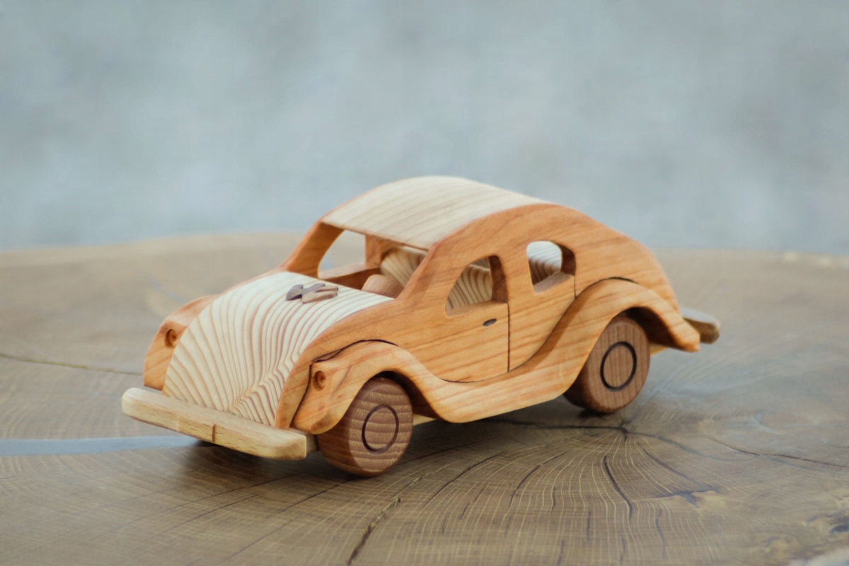 Автомобиль изготовлен вручную из дерева – с большой точностью и вниманием к деталям.