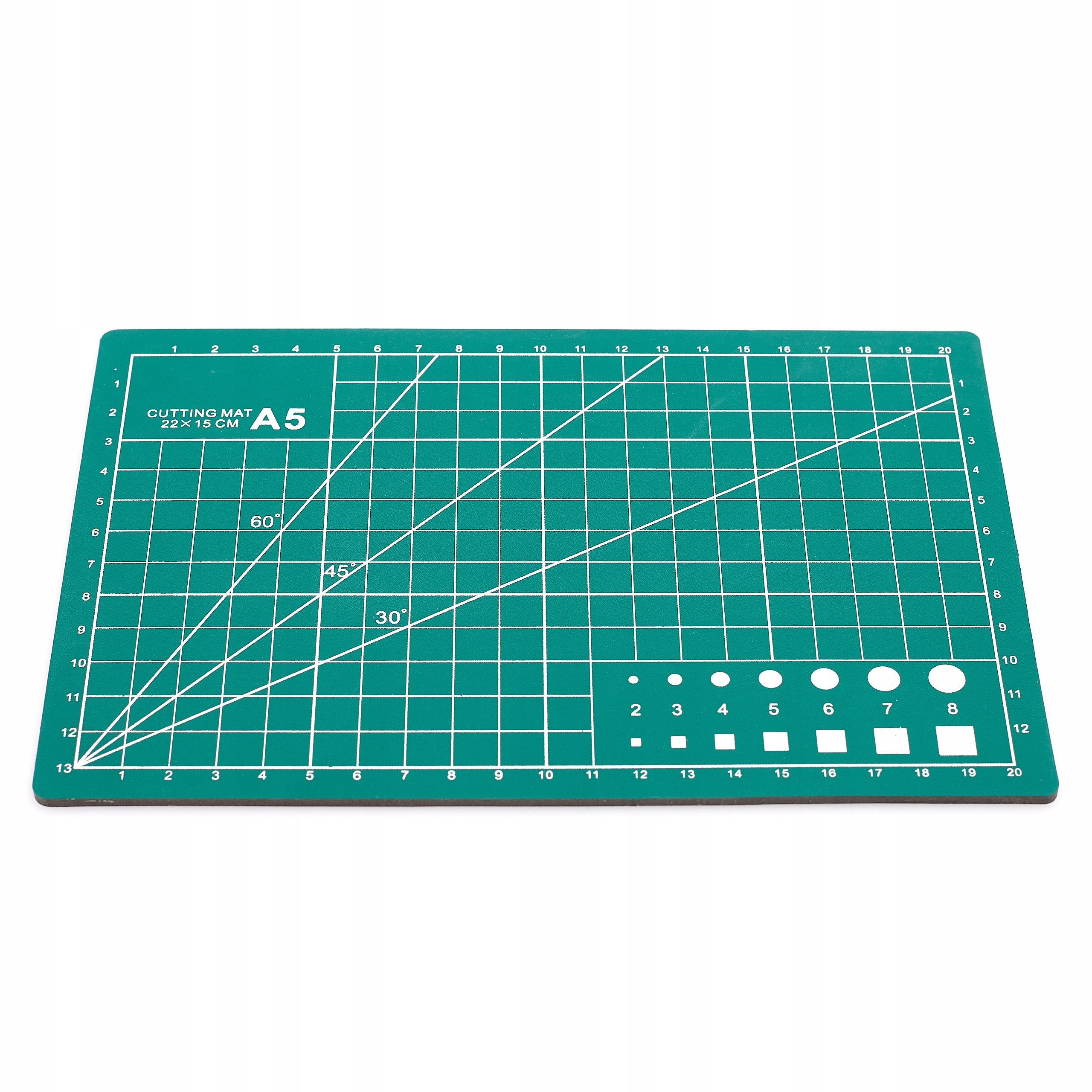 Коврик изготовлен из специального материала, обладающего самовосстанавливающимися свойствами – он частично регенерирует после разрезания лезвием. После резки коврик остается гладким. Коврик двусторонний - на нем напечатана шкала, вспомогательные линии и фигуры, полезные в работе, каждая сторона имеет свой принт. Коврик идеально подходит в качестве подкладки под рабочий стол или письменный стол, его можно использовать во время моделирования или работы в офисе. Коврик можно разрезать скальпелем, дисковым ножом или сегментным ножом.