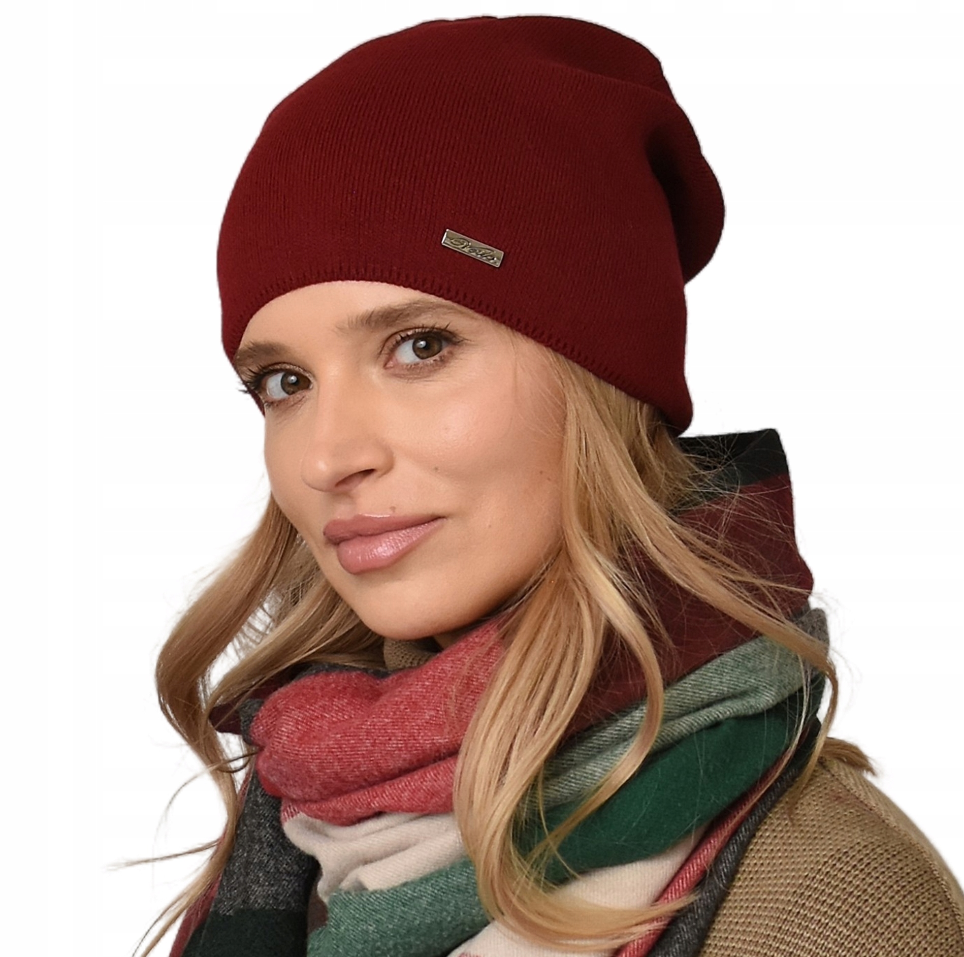 Модна бордова Жіноча осіння підтяжна ШАПКА ПОЛЬСЬКИЙ ВИРОБНИК зимова V3