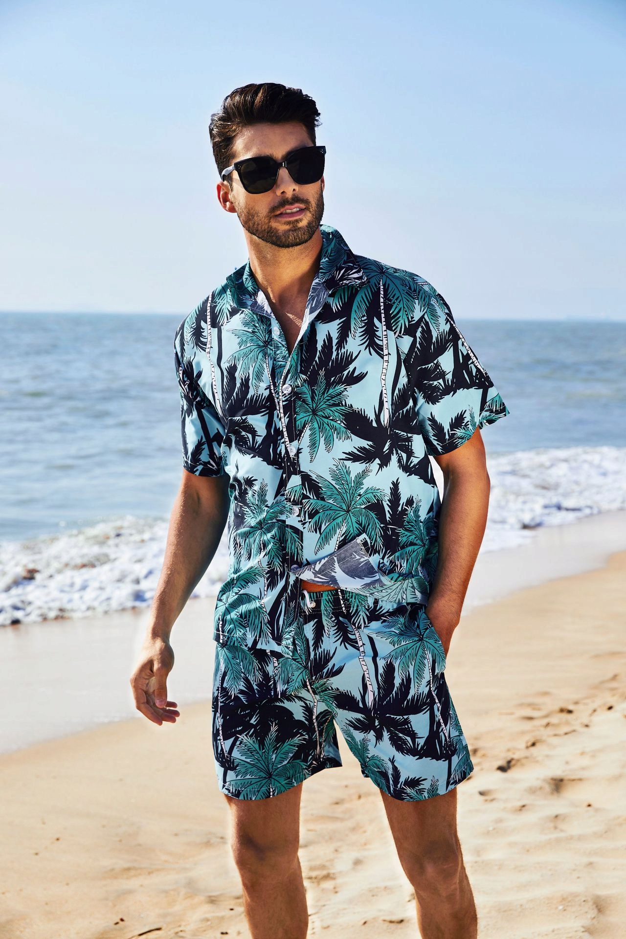 МОДНЫЙ КОМПЛЕКТ МУЖСКАЯ РУБАШКА И ПЛЯЖНЫЕ ШОРТЫ ГАВАЙСКИЙ ПРАЗДНИК С КОРОТКИМ РУКАВОМ
