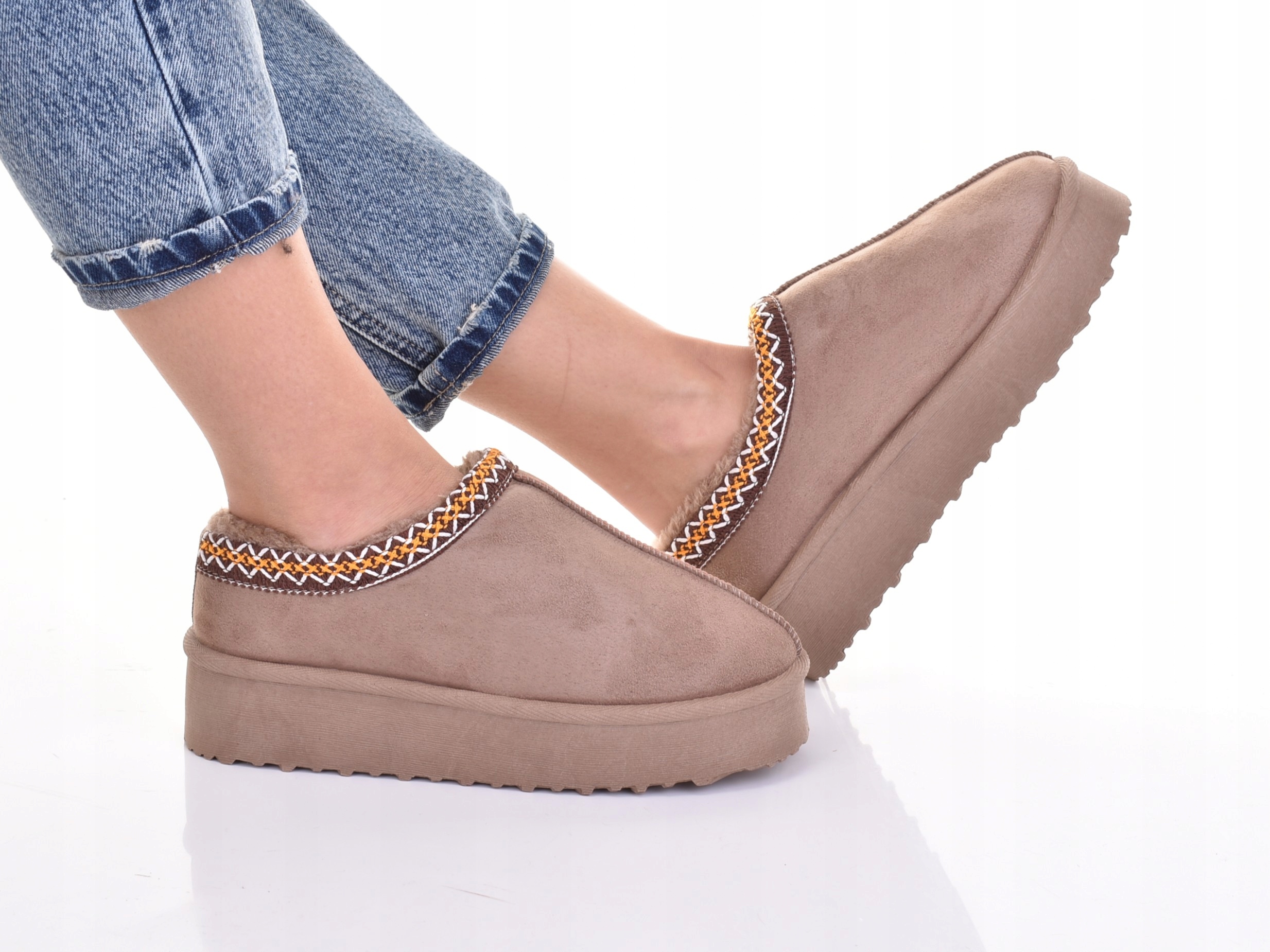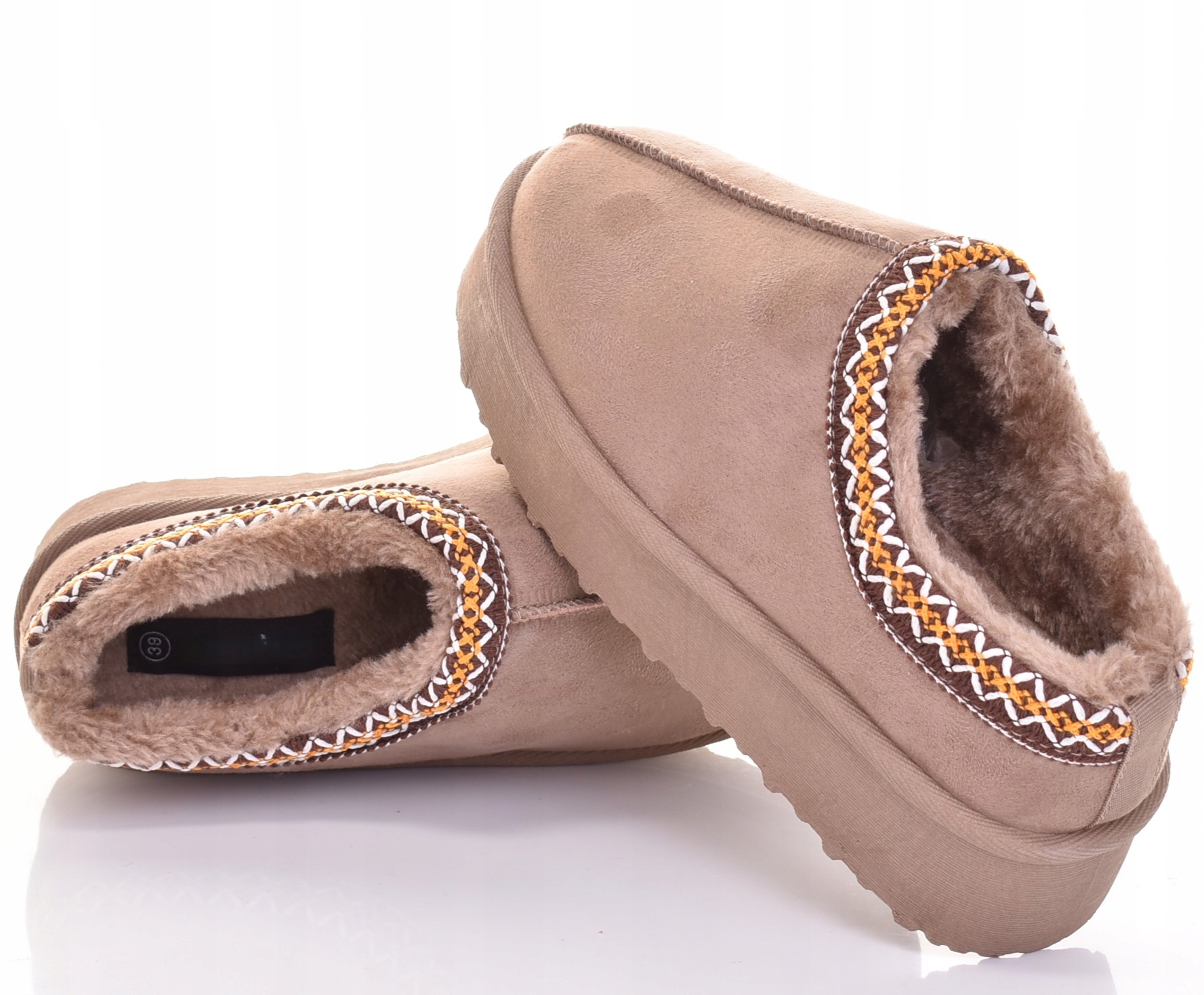 МОДНЫЕ НИЗКИЕ СНЕЖНЫЕ БОТИНКИ ЖЕНСКИЕ ЗИМНИЕ ТАПОЧКИ НА ПЛАТФОРМЕ, БЕЖЕВЫЙ