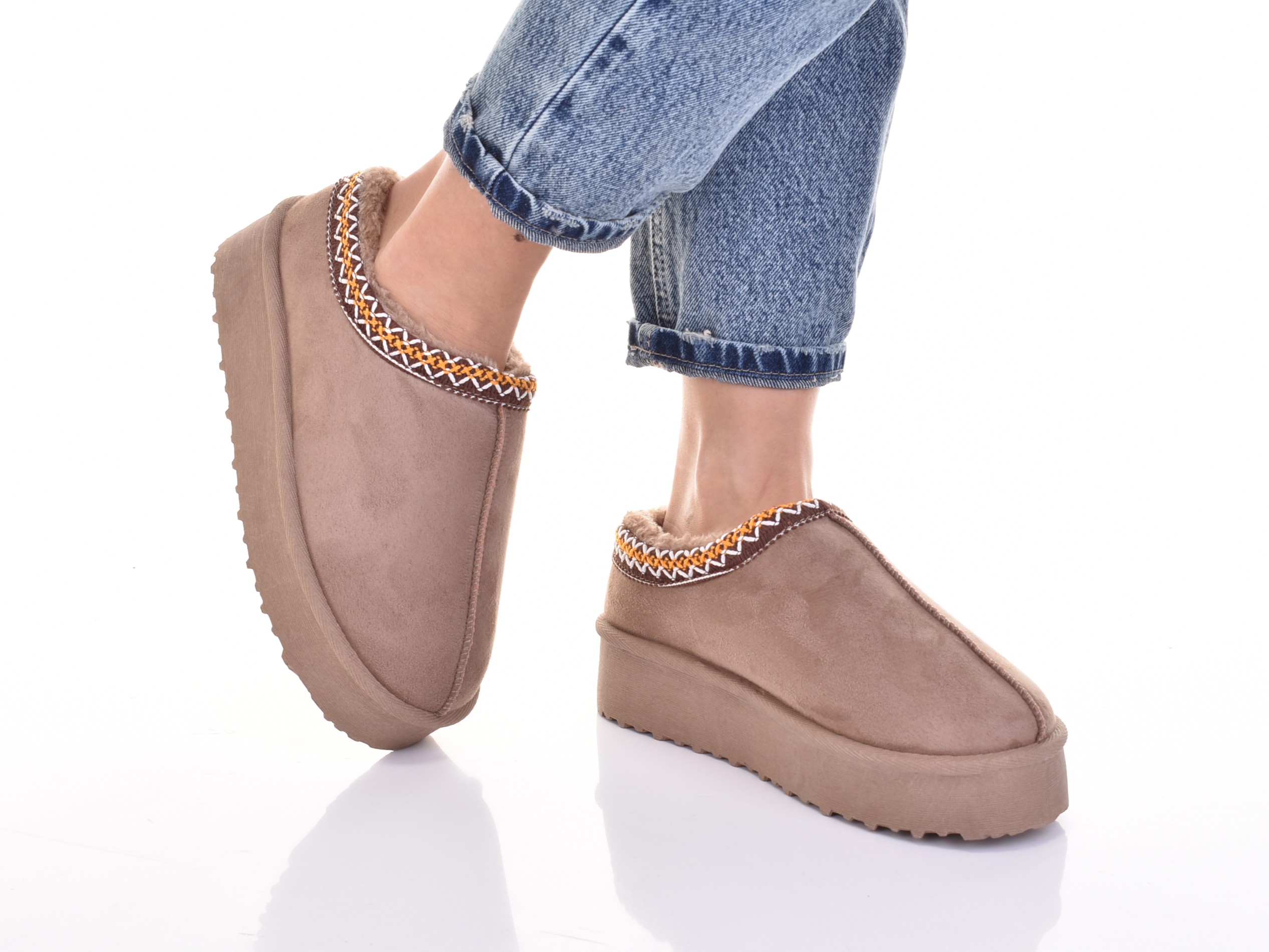 Внутренняя часть обуви утеплена мясистым, теплым и приятным мехом, что обеспечивает комфорт при носке.