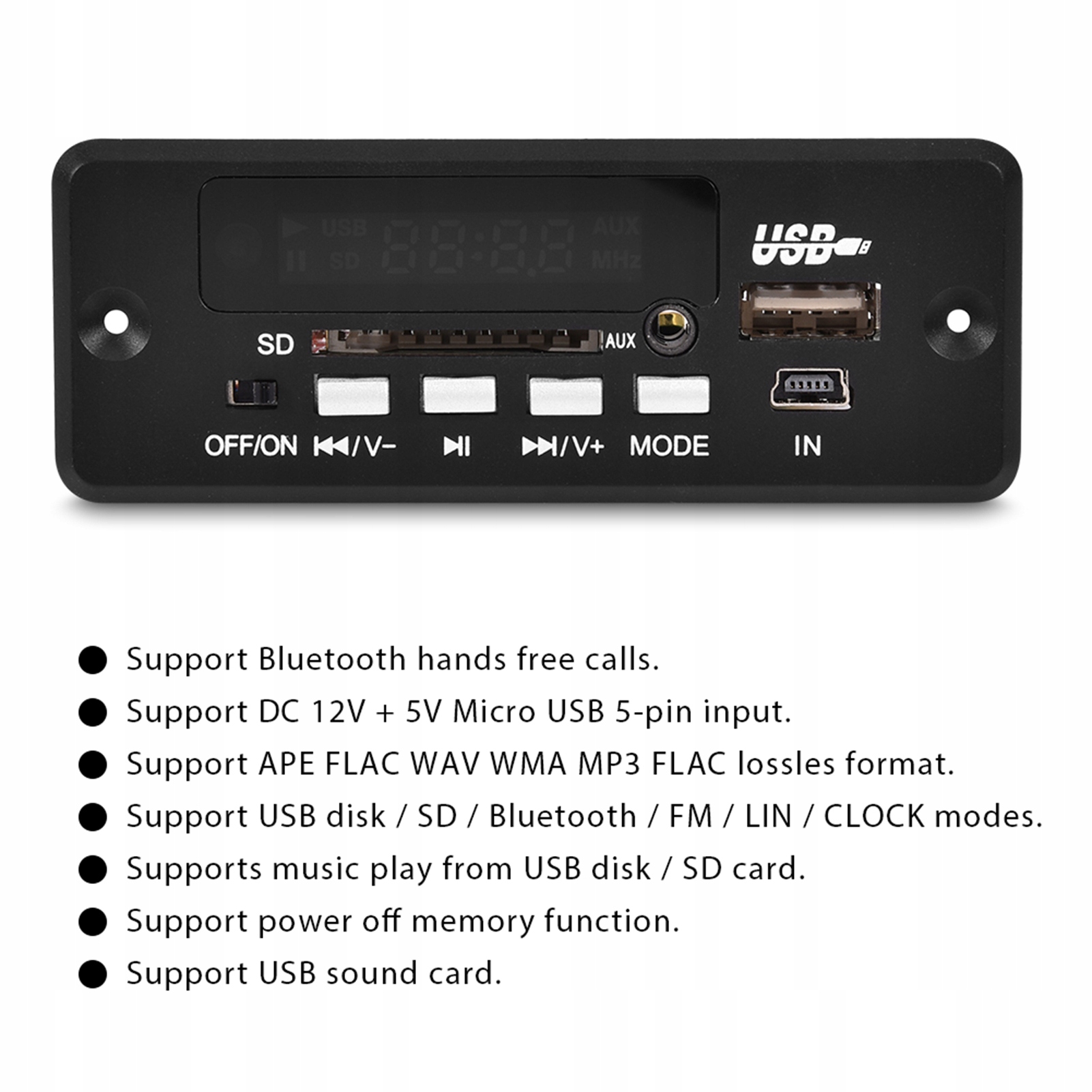 MODUŁ ODTWARZACZ BLUETOOTH MP3 AUX RADIO USB