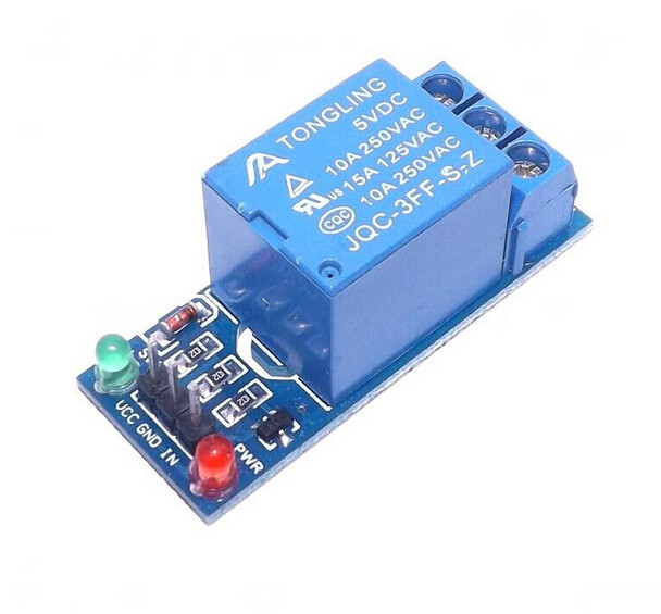 Управление осуществляется путем подачи низкого состояния (GND) на контакт IN. Также модуль имеет 2 диода, которые сигнализируют о наличии питания на модуле и состоянии реле.