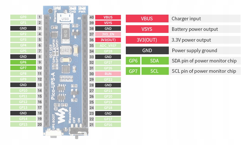 Дополнительная информация, схемы, примеры программного обеспечения и т. д. http://www.waveshare.com/wiki/Pico-UPS-A