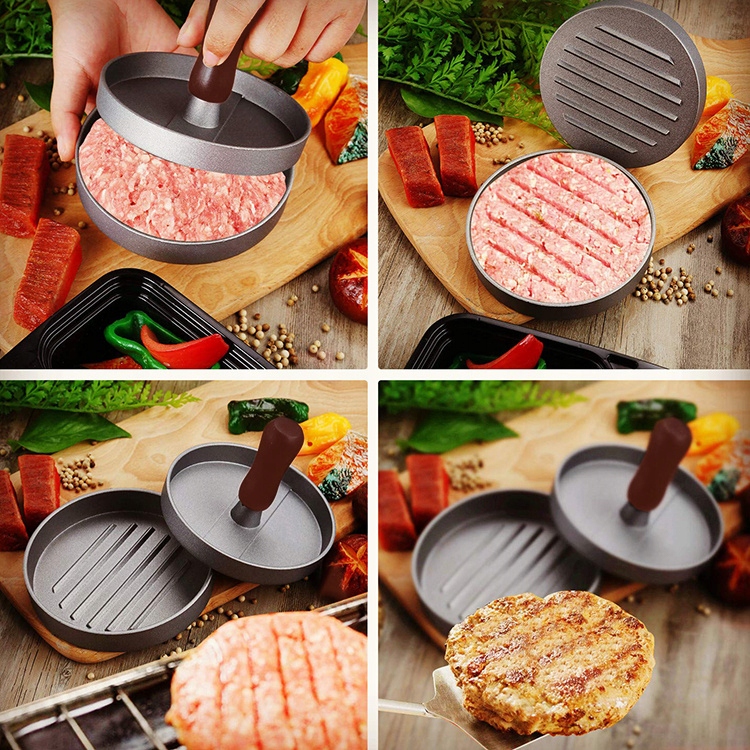 Современный и элегантный алюминиевый пресс для приготовления гамбургеров. Идеально подходит для получения правильной формы котлет, которые во всех местах будет одинаковой толщины, поэтому оно пропечется равномерно.