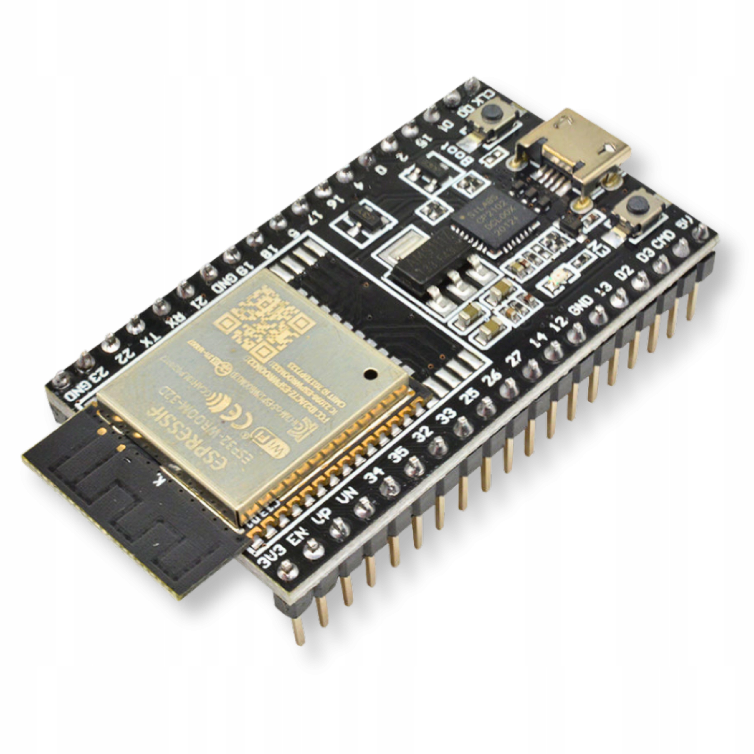 Модуль содержит Dual Core Xtensa 32-битный микроконтроллер LX6, работающий в диапазоне частот от 80 до 240 МГц, обеспечивающий высокую производительность при напряжении питания 5В< /б>. Максимальное напряжение на порте ввода-вывода составляет 3,3 В, что обеспечивает совместимость с наиболее часто используемыми датчиками и периферийными устройствами. Модуль оснащен 520 КБ SRAM-памятью и 8 МБ флэш-памятью, что обеспечивает расширенную обработку и хранение данных. Встроенный WiFi 802.11 b/g/n поддерживает такие функции безопасности, как WEP, WPA/WPA2, PSK/Enterprise, AES, SHA2, ECC и RSA-4096. обеспечение безопасной беспроводной связи. Кроме того, модуль оснащен Bluetooth BLE и преобразователем USB-UART CP2102, что обеспечивает простоту программирования и связи через разъем microUSB. Размеры модуля составляют 55 x 28,5 мм, что делает его идеальным для использования в проектах IoT, требующих компактных решений.