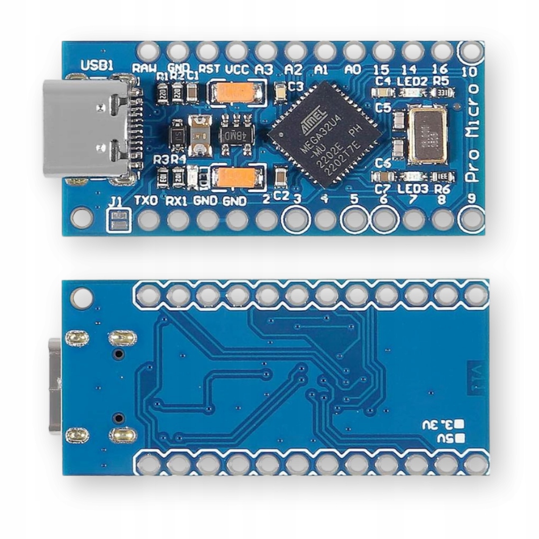 Универсальный модуль с микроконтроллером Atmega32U4 16 МГц — идеален для создания прототипов и проектов. Модуль совместим с Arduino Pro Micro 5V и не требует дополнительного последовательного преобразователя, что делает его намного меньше, чем Arduino Nano. Он также имеет порт USB-C, защищенный предохранителем PTC, что устраняет необходимость во внешнем преобразователе. Модуль совместим со средой Arduino IDE. Чтобы начать программирование модуля, просто подключите его к компьютеру с помощью кабеля USB-C и выберите в настройках программы плату «Леонардо».