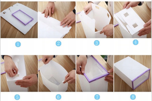 Коробка из белого полупрозрачного пластика, защищающего обувь от грязи и влаги. Клапан органайзера прозрачный, поэтому вы можете легко и быстро проверить его содержимое. Благодаря ящикам вы легко сможете поддерживать порядок в своем гардеробе или шкафу.