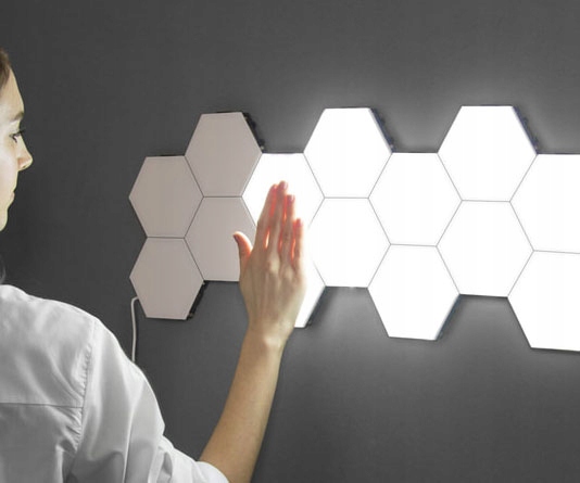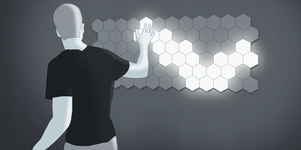 Модульный настенный светильник с сенсорной панелью. Пользователь может управлять освещением.