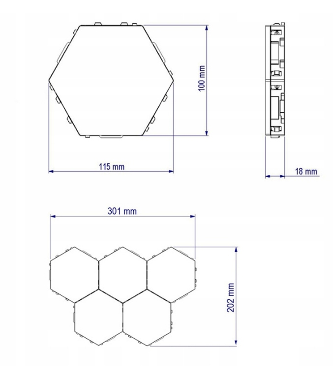 Размеры одной лампы: 100 мм х 115 мм, толщина: 18 мм