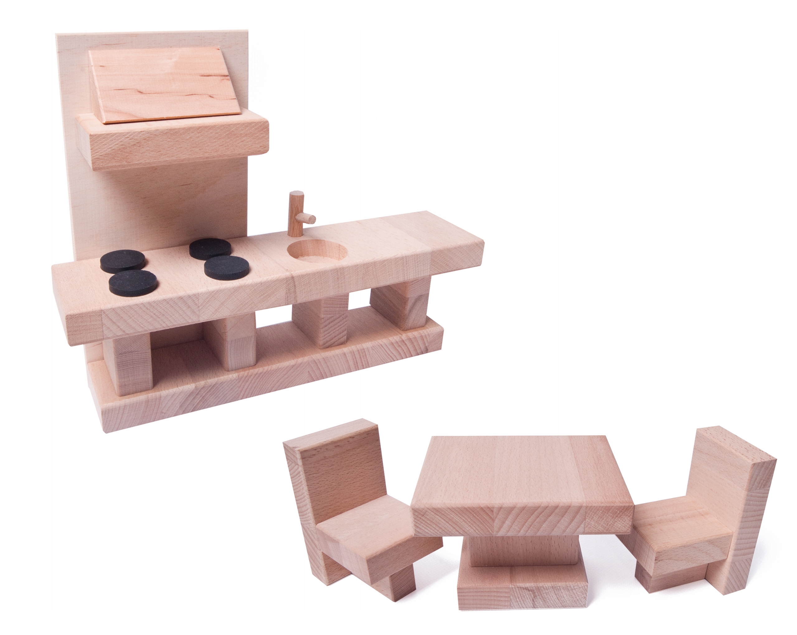 В комплект входит мебель из массива дерева толщиной 20 мм. Аккуратно сделанный и законченный, он понравится каждому ребенку!