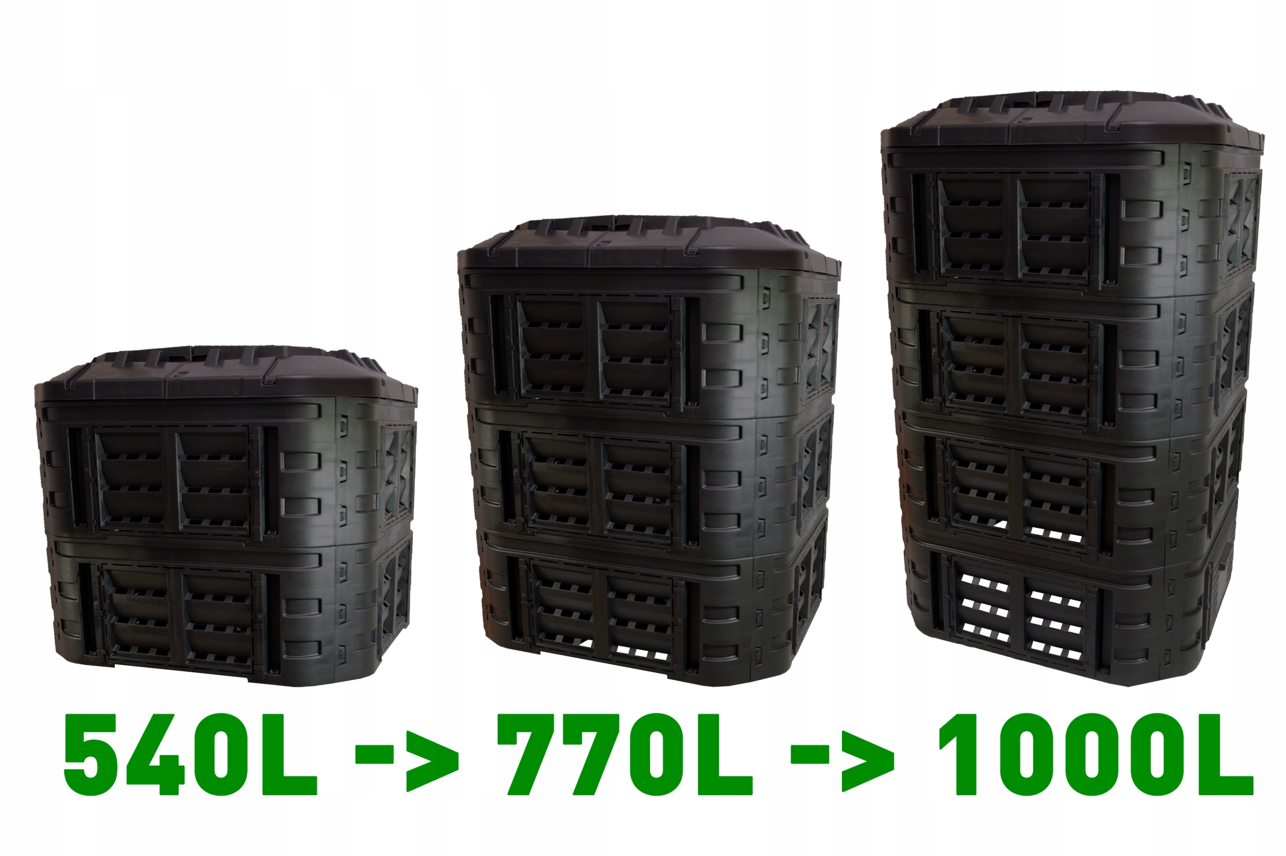 <ул>Компостер имеет модульную конструкцию, что означает, что это может быть компостер емкостью: 80л, 310л, 540л, 770л, 1000л, 2000л и даже 4000л в зависимости от ваших потребностей.< /п>