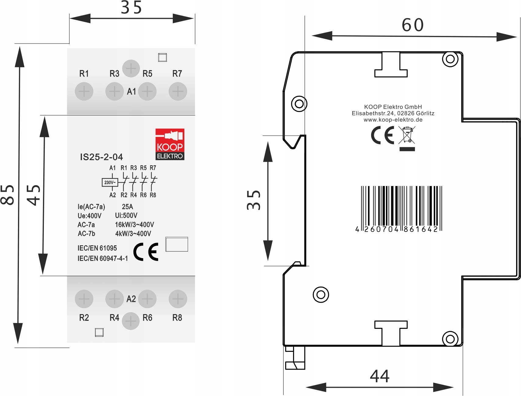 - IS25-1-11 25A 1xnc 1xnc 230V