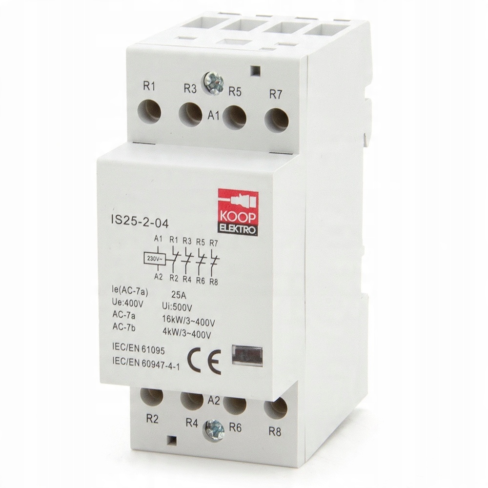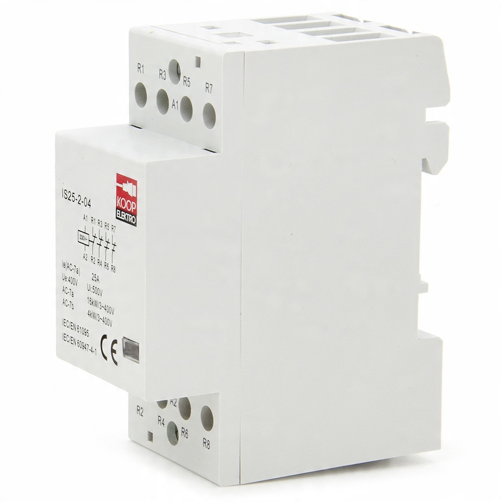 Модульный контактор 25-04 230V 25A 2P 4NC 3-фазные отверстия для рельса TH35