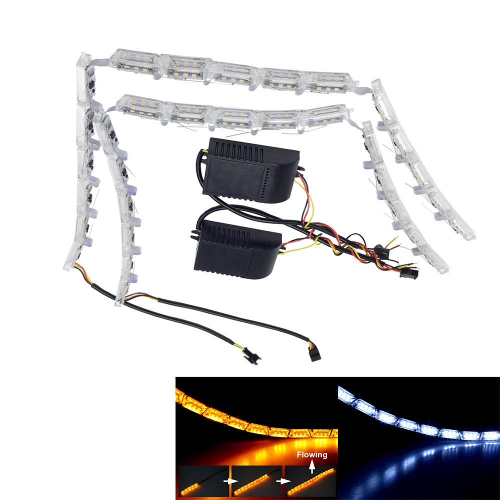 Комплект гибких светодиодных фонарей с плавающей (динамической) функцией кристаллических указателей поворота. Светодиодные светильники DYNAMIC являются решением новейших технологий и предназначены для людей, желающих добиться уникального внешнего вида своих светильников. Каждая полоса имеет уникальную функцию плавного поворотника, как в последних моделях автомобилей. Последовательная работа означает, что когда мы включаем указатель поворота во время работы в качестве дневных ходовых огней, белый свет временно выключается и снова включается, когда мы выключаем указатель поворота. Фантастический эффект, равномерный световой луч, простая установка. Современные светодиоды обеспечивают отличную видимость на дороге. Светодиодные светильники не только экономят деньги (увеличивают срок службы и в несколько раз снижают энергопотребление), но и повышают безопасность. Лампы изготовлены из высококачественного гибкого материала. Это допускает любой изгиб и адаптацию к поверхности абажура. Полоски гибкие, поэтому из них можно создавать дуги и кривые. Для крепления внутри автомобильных фонарей.