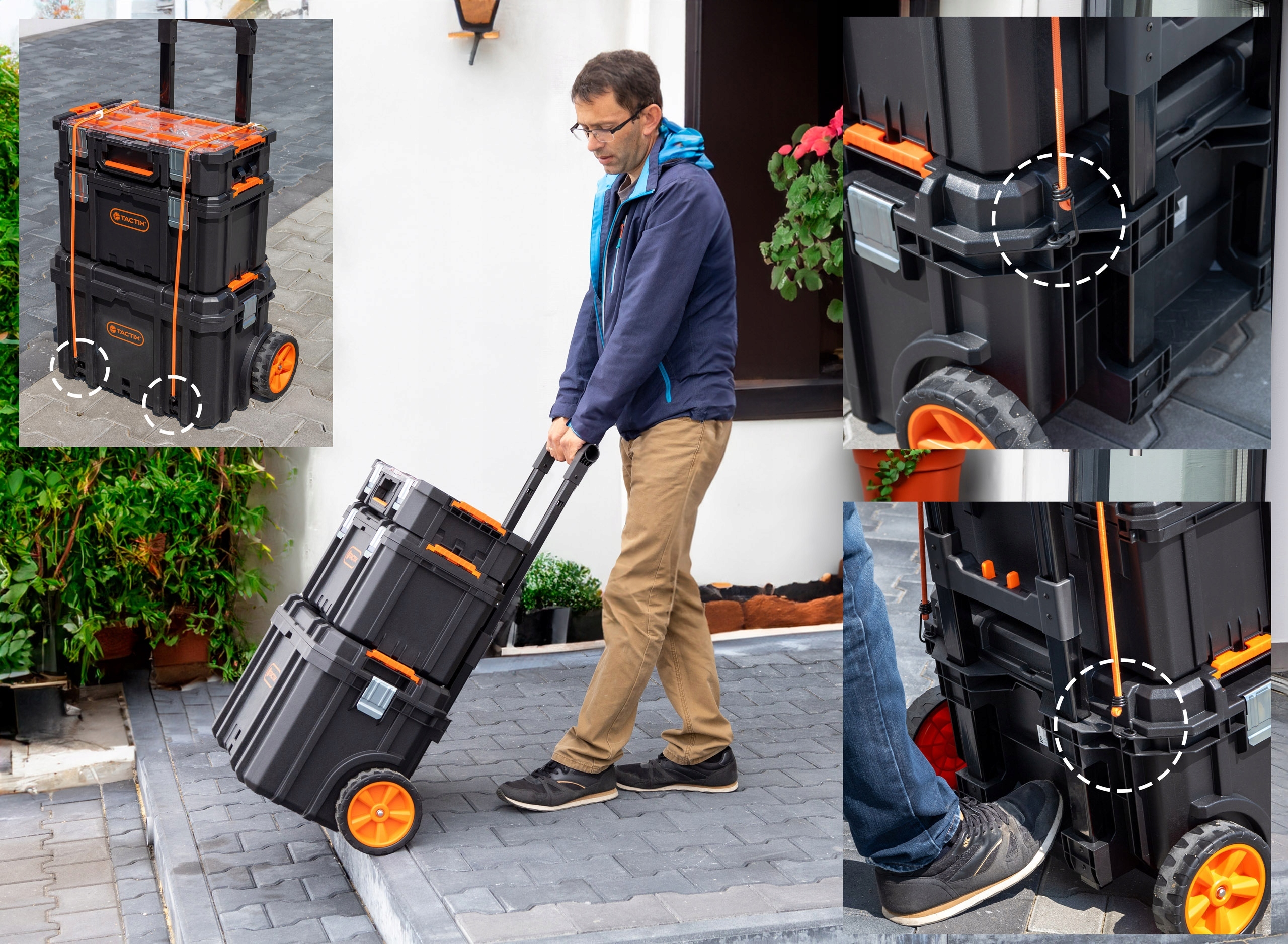 Комплект модульных коробок в чемодане на колесиках является идеальным решением для всех мобильных служб, профессиональных подрядчиков на строительных площадках и любителей DIY, которым необходим доступ к большому количеству инструментов и аксессуаров, которые можно безопасно хранить и транспортировать.