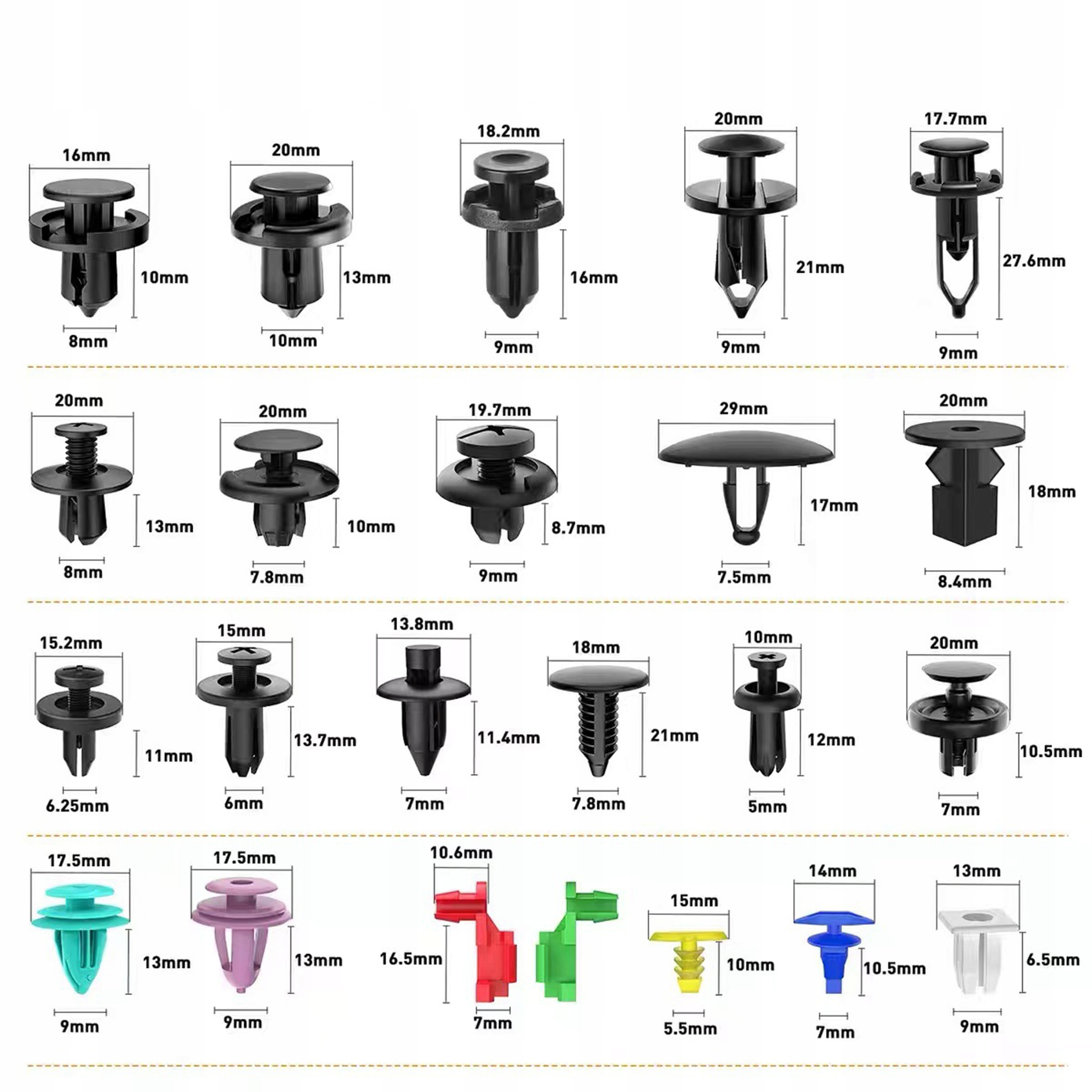 автомобильные запонки используются для подключения отдельных частей автомобиля друг с другом. Вы можете использовать наш набор при ремонте или замене таких элементов, как: