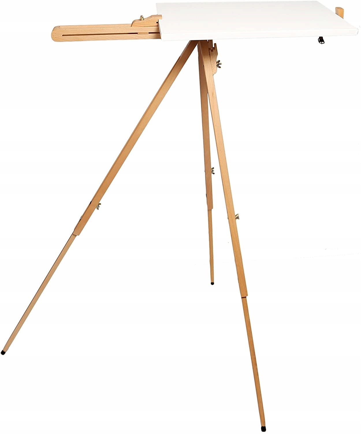 Мольберт изготовлен из очень эстетичного, с вниманием к деталям и качеству отделка отдельных элементов очень функциональна и устойчива. Концы ножек обработаны защитой, которая устойчиво удерживает землю и не царапает деликатные поверхности.