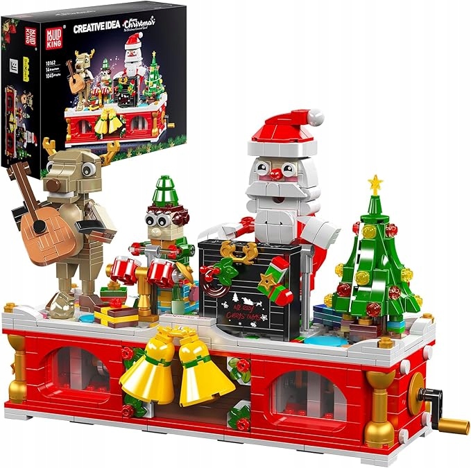 Этот уникальный набор Mold King 10162 - Рождественский карнавальный оркестр представляет собой сочетание радостной рождественской атмосферы, движущихся элементов и более тысячи блоков, которые вместе создают миниатюрный концерт Санта-Клауса, эльфа и северного оленя.