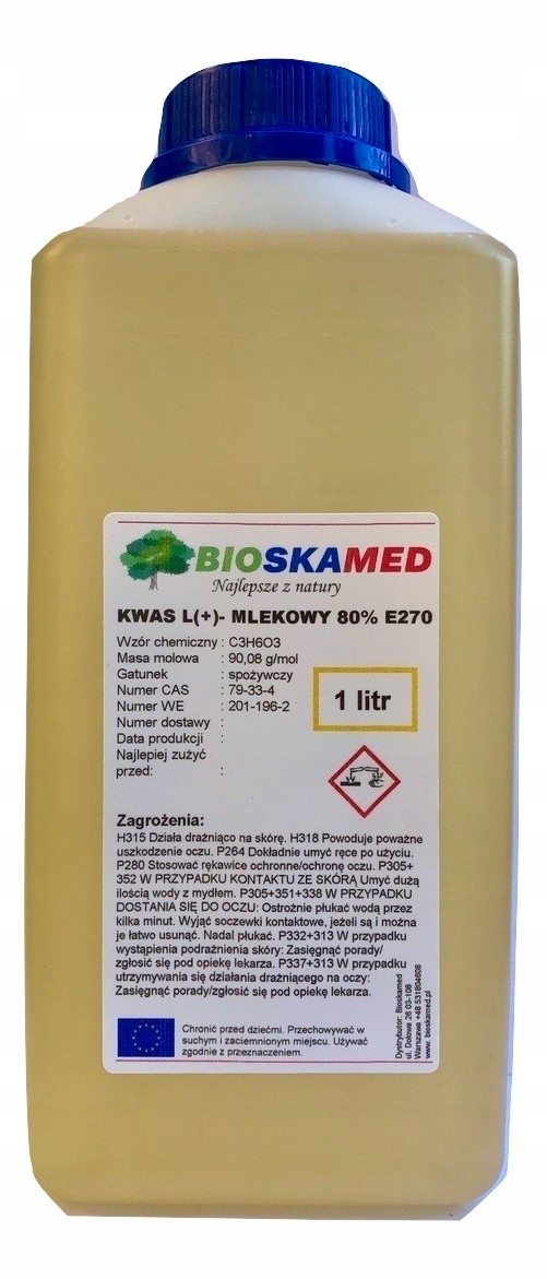 Просматривая «Молочная кислота 80% 1 литр пищевой BIOSKAMED», вы можете быть уверены, что данный товар из каталога «Кислоты» будет доставлен из Польши и проверен на целостность. В цене товара, указанной на сайте, учтена доставка из Польши. Внимание!!! Товары для Евросоюза, согласно законодательству стран Евросоюза, могут отличаться упаковкой или наполнением.