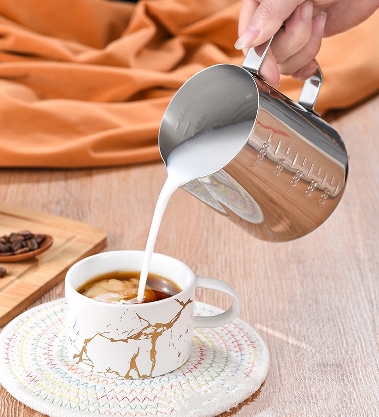 Стальной молочник с мерным стаканом для вспенивания молока - 550 мл