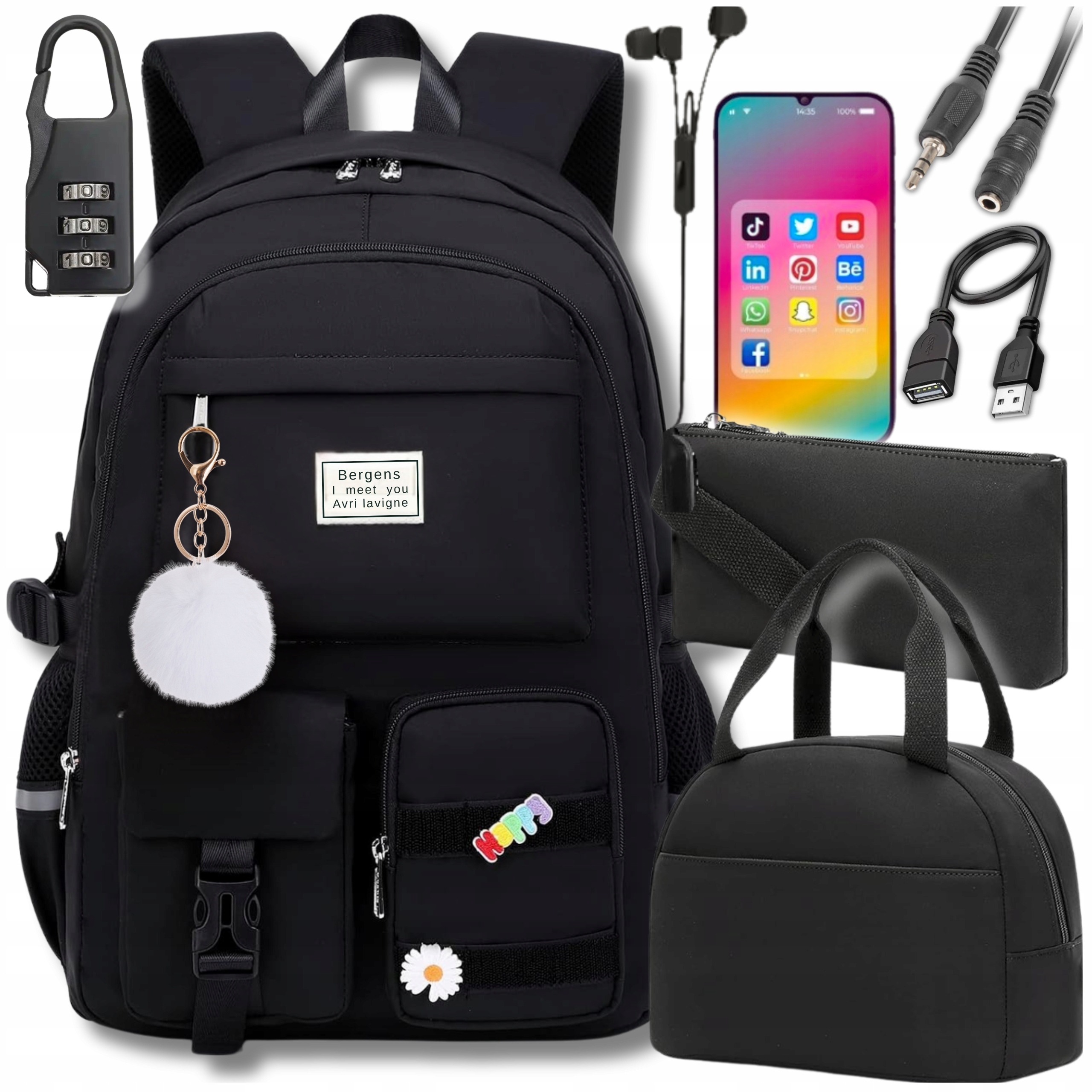 ✅ ШКОЛЬНЫЙ РЮКЗАК + СУМКА-КАРАНДАШ + НАВЕСНОЙ ЗАМОК + USB-КАБЕЛЬ + РАЗЪЕМНЫЙ КАБЕЛЬ + ПОМПОНОВЫЙ БРЕЛОК + СУМКА ДЛЯ ЗАВТРАКА ЛУЧБОКС + 2 PINS