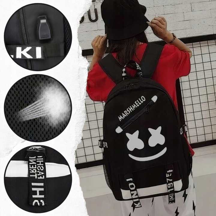МОЛОДІЖНИЙ ШКІЛЬНИЙ РЮКЗАК, СВІТЛИВИЙ, МУЛЬТИЗАПЛАЩЕННЯ, ЧОРНИЙ, USB, 35 Л, ВОДОНЕПРОНИКИЙ