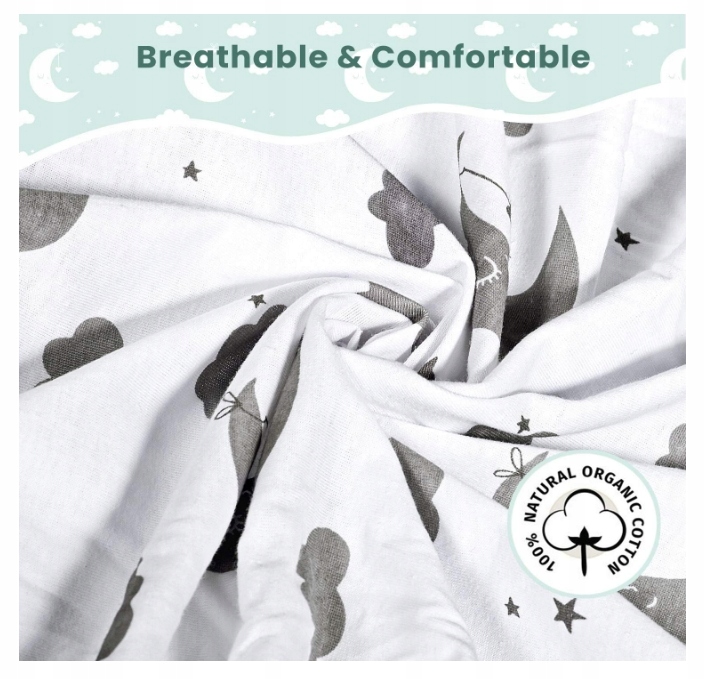 - Мягкий и дышащий. Простыни Momcosy, изготовленные из высококачественного хлопка, мягкие, легкие и дышащие, создают уютную и дружелюбную атмосферу для сна.