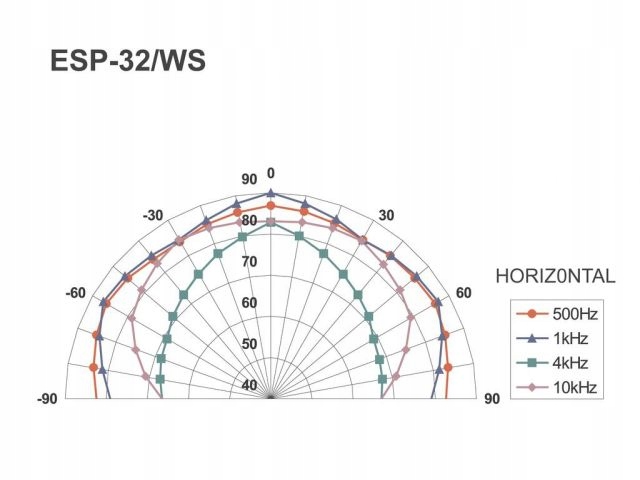 - Технология 100 В, 2-полосная версия с дополнительным высокочастотным динамиком (мобильный в: ESP-17/WS, ESP-22/WS и ESP-32/WS)