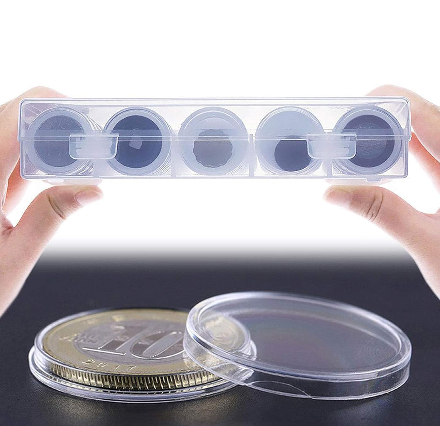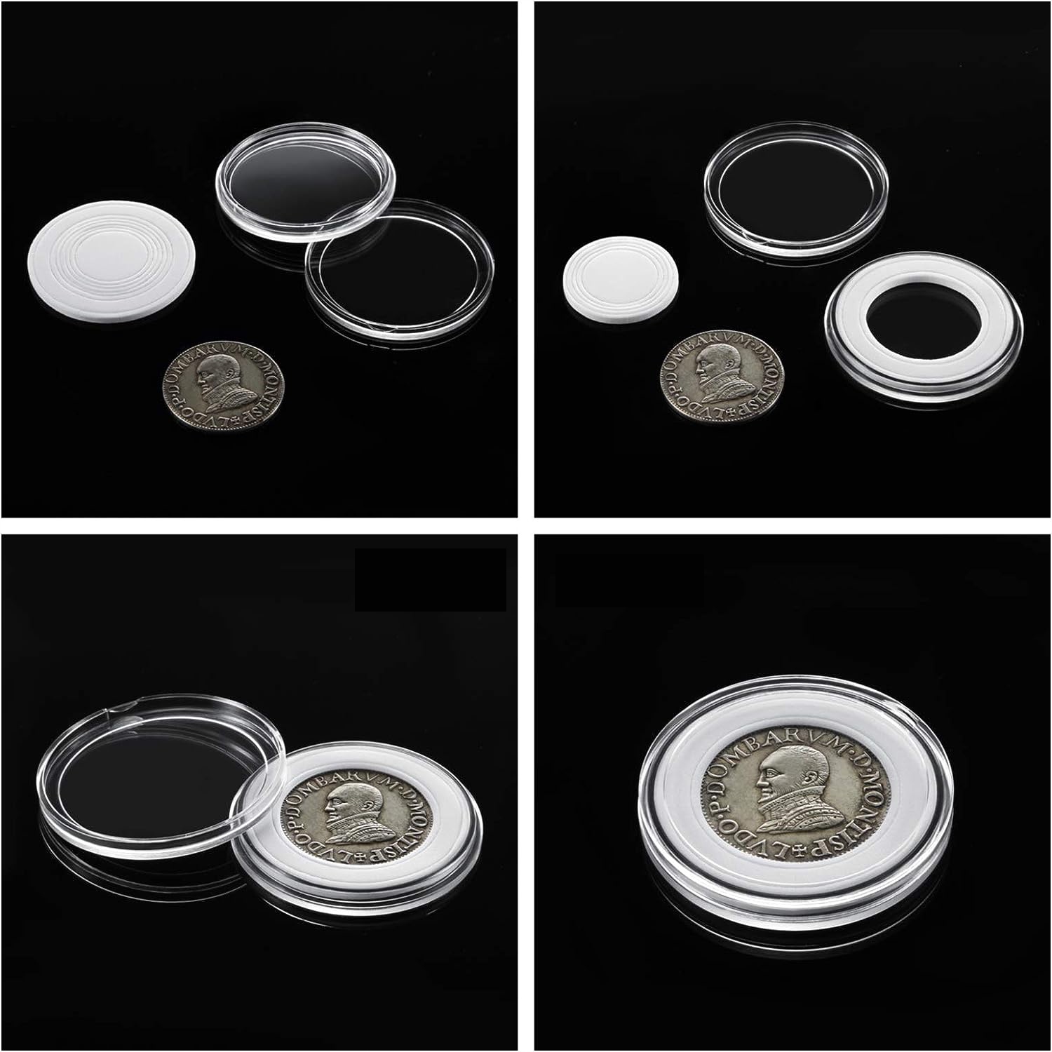 - ✅Крышка и дно этих прозрачных капсул для монет надежно соединены друг с другом защелками.