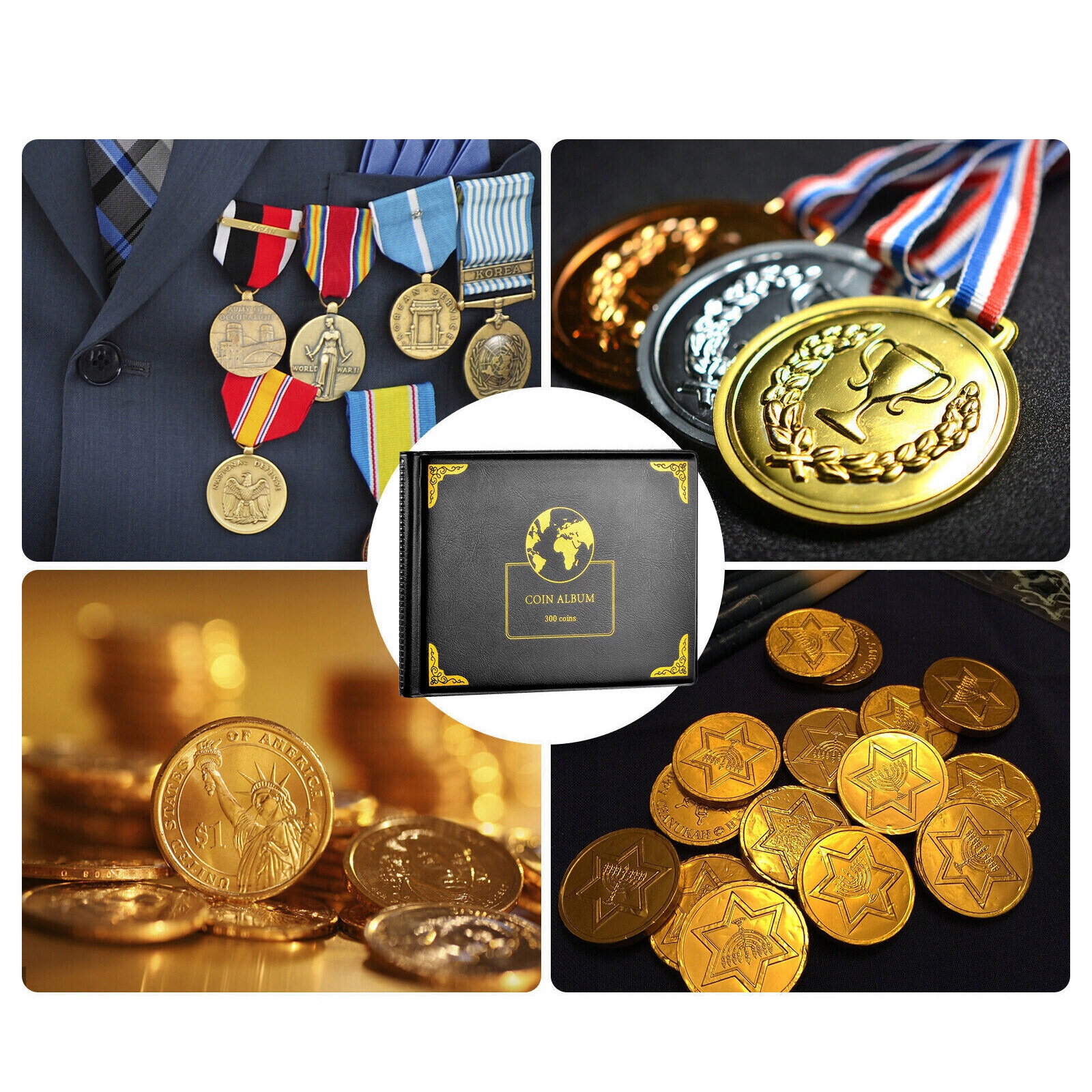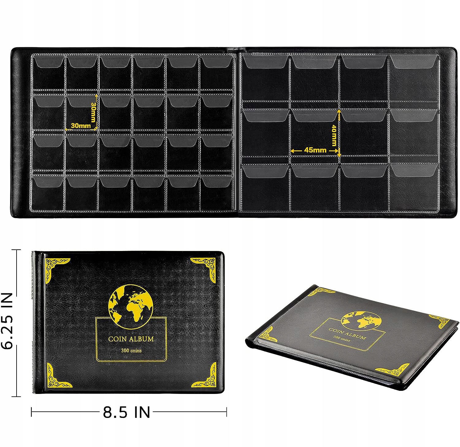👍👍 ВМЕСТИМОСТЬ И РАЗМЕР АЛЬБОМА ДЛЯ КОЛЛЕКТОРА МОНЕТ - 300 прозрачных карманов на рукавах имеют большую вместительность для хранения коллекционных монет диаметром 20–38 мм (10 страниц для сбора монет по 240 штук). Карманы для монет 30 мм; 5 сторон для 60 карманов для монет 38 мм), размер кармана 30 мм составляет примерно 1,2 х 1,2 дюйма / 3,1 х 3,1 см; Карман диаметром 38 мм составляет примерно 1,5 х 1,7 дюйма/4,0 х 4,5 см; Всего в 300 карманах можно хранить 300 материалов для сбора монет.