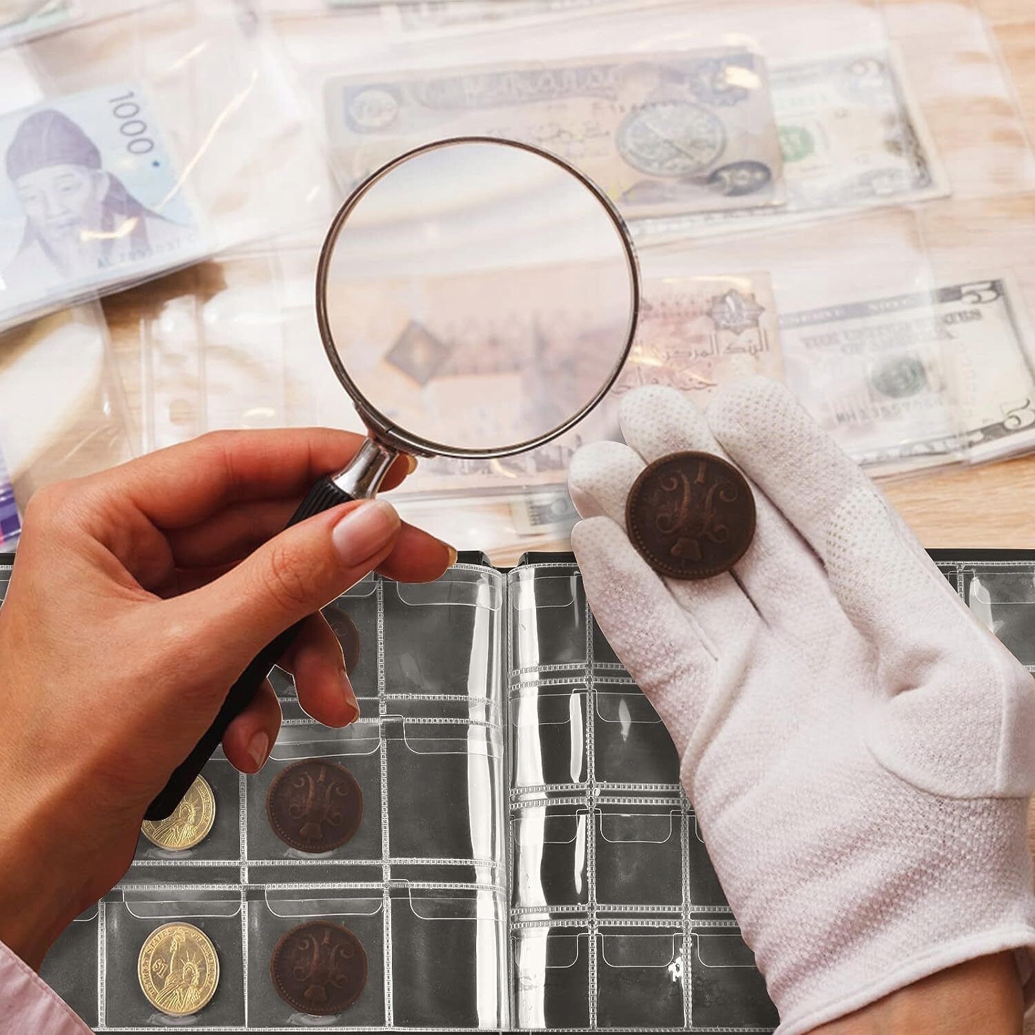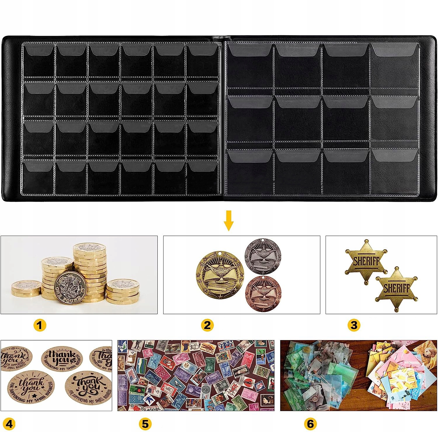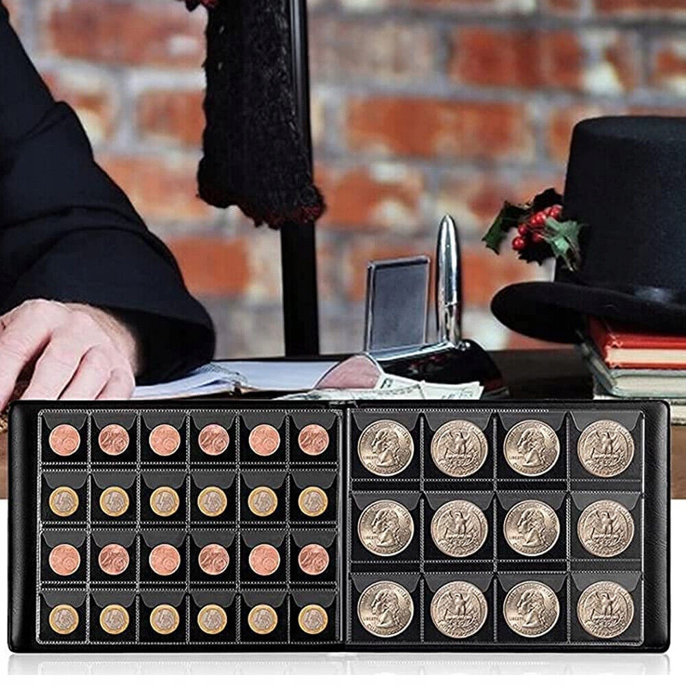 👍👍 ХОРОШАЯ ИСКУССТВЕННАЯ КОЖА И ПРОЗРАЧНЫЙ ДИЗАЙН КАРМАНОВ - Толстые страницы для сбора монет, прозрачные с обеих сторон, позволяют четко видеть монету. , вынимайте и храните самостоятельно, быстро просматривайте и заменяйте и делитесь ими с друзьями.