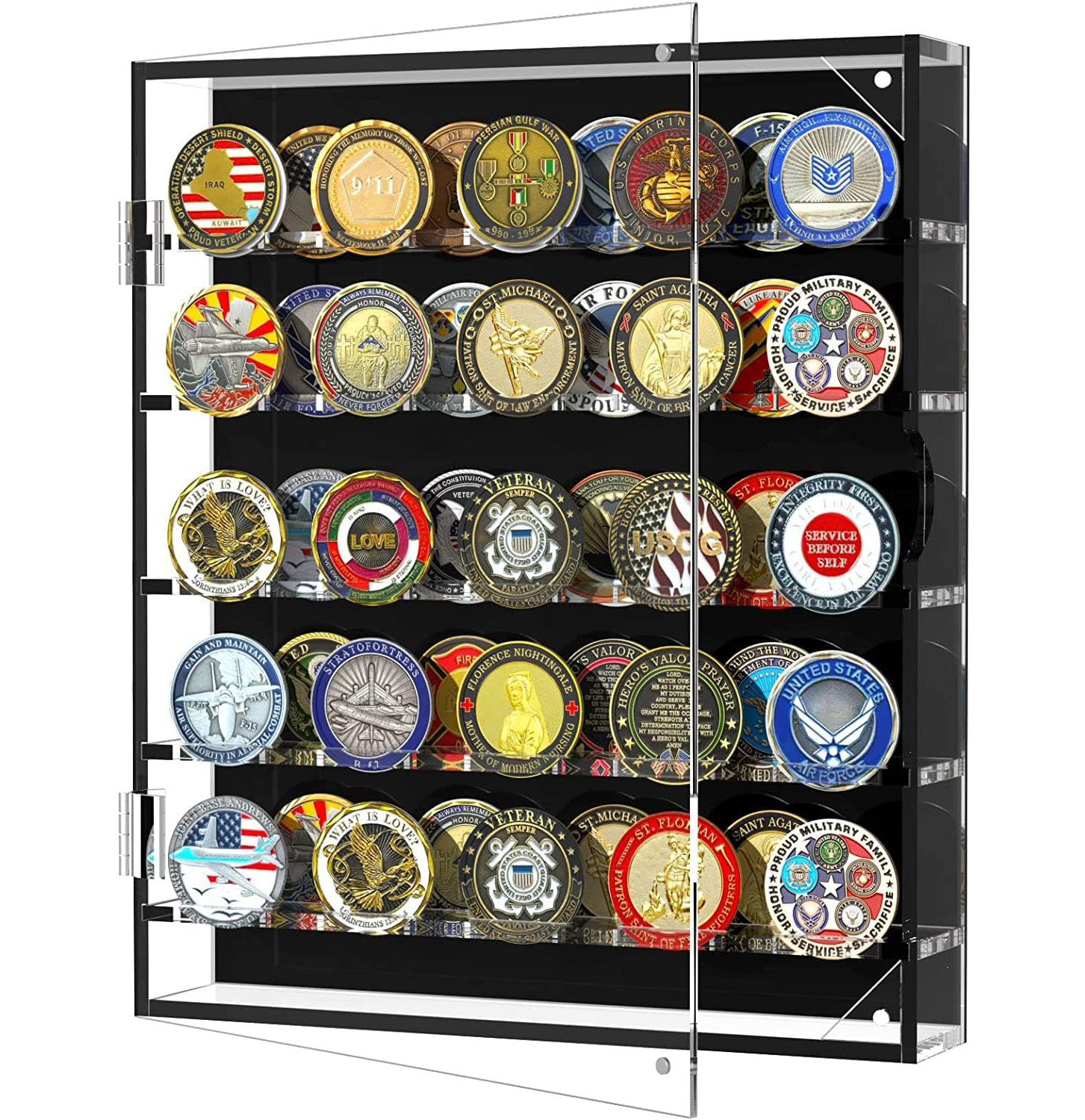 🪙🪙 Прозрачный акриловый стенд: Благодаря хорошо сделанному стенду для монет, который полностью демонстрирует ваши памятные монеты, вы больше не можете хранить свои военные медали в мешках или буях, а с гордостью демонстрируйте их.