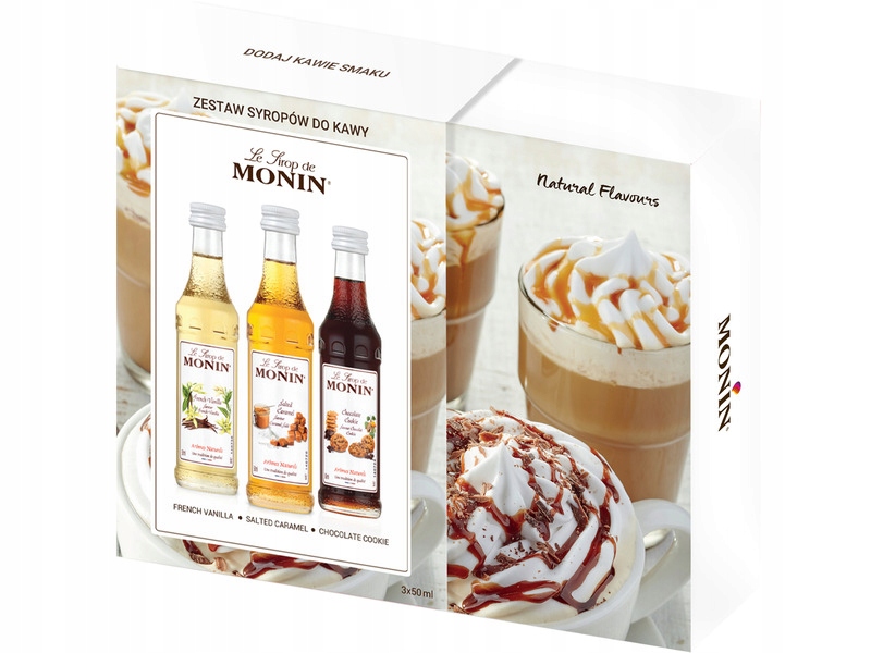 Мини-набор MONIN 3 x 50 мл понравится любителям ароматного кофе и десертов. Откройте для себя мини-кофейный набор, который станет незаменимым атрибутом каждого семейного ужина! В набор входят 3 самых популярных вкуса кондитерских изделий: Французская ваниль MONIN, Соленая карамель MONIN и Шоколадное печенье MONIN. Идеально подходит для десертных напитков, кофе и пирожных. Будьте очарованы натуральным вкусом и ароматом! Сливочный вкус ароматной ванили прекрасно сочетается с горьковатыми нотками кофе. Сироп французской ванили MONIN — идеальное дополнение к кофейным напиткам, подчеркивающее многослойную глубину вкуса. Обязательный компонент для капучино, латте и молочных коктейлей, он входит в тройку самых популярных вкусов кофе. Французская ваниль соблазняет своим экзотическим ароматом и прекрасно сочетается с ягодами и экзотическими фруктами. Придайте утреннему латте неповторимый ванильный вкус. Создан для ценителей такого кондитерского изделия, как карамель. Почувствуйте тонкий баланс сиропа MONIN Salted Caramel между мягкостью карамелизированного сахара и нотками соли. В сочетании щепотка соли создает приятный контраст, соленые нотки сиропа усиливают сладость, создавая роскошные впечатления и незабываемый вкус. Наслаждайтесь интенсивным ароматом. Это будет ваша любимая добавка к кофейным напиткам. Почувствуйте изысканный вкус шоколадного печенья, испеченного в духовке. В сочетании с интенсивным вкусом темного шоколада в сиропе MONIN Chocolate Cookie они добавят вашим напиткам райские нотки. Сироп прекрасно сочетается с молочными напитками, капучино, латте макиато, горячим шоколадом и десертами. Для создания визуального эффекта сверху можно добавить взбитые сливки, измельченное печенье или маркеры MONIN L'Artiste. Аромат смешанных ингредиентов наверняка соблазнит ваши вкусовые рецепторы.