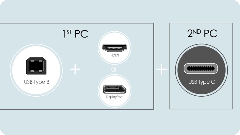 ⭐ ⭐ ⭐ ⭐ Подключение компьютера к контракту на типе управления и HDMI или Displayport, чтобы пользоваться полной функциональностью программ. Используйте порт типа C USB для подключения второго компьютера или ноутбука, и насладитесь одновременной передачей изображения и данных. Один набор аксессуаров на работе с двумя копмутерами. Если возникает необходимость, вы также можете подключить наушники или динамик с помощью порта Mini Jack