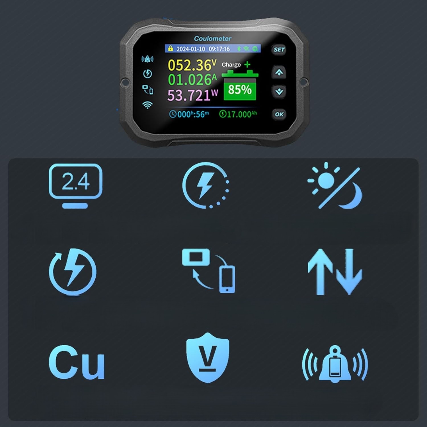 - Универсальное использование: монитор батареи подходит для гольф-каров/домиков/солнечных батарей 10–100 В. Совместимость с широким спектром типов аккумуляторов, будь то свинцово-кислотные аккумуляторы, тройные литиевые аккумуляторы, кислотно-фосфорные аккумуляторы и другие типы аккумуляторов. Если они соответствуют диапазону напряжения, вы можете быть уверены, что их можно будет использовать.