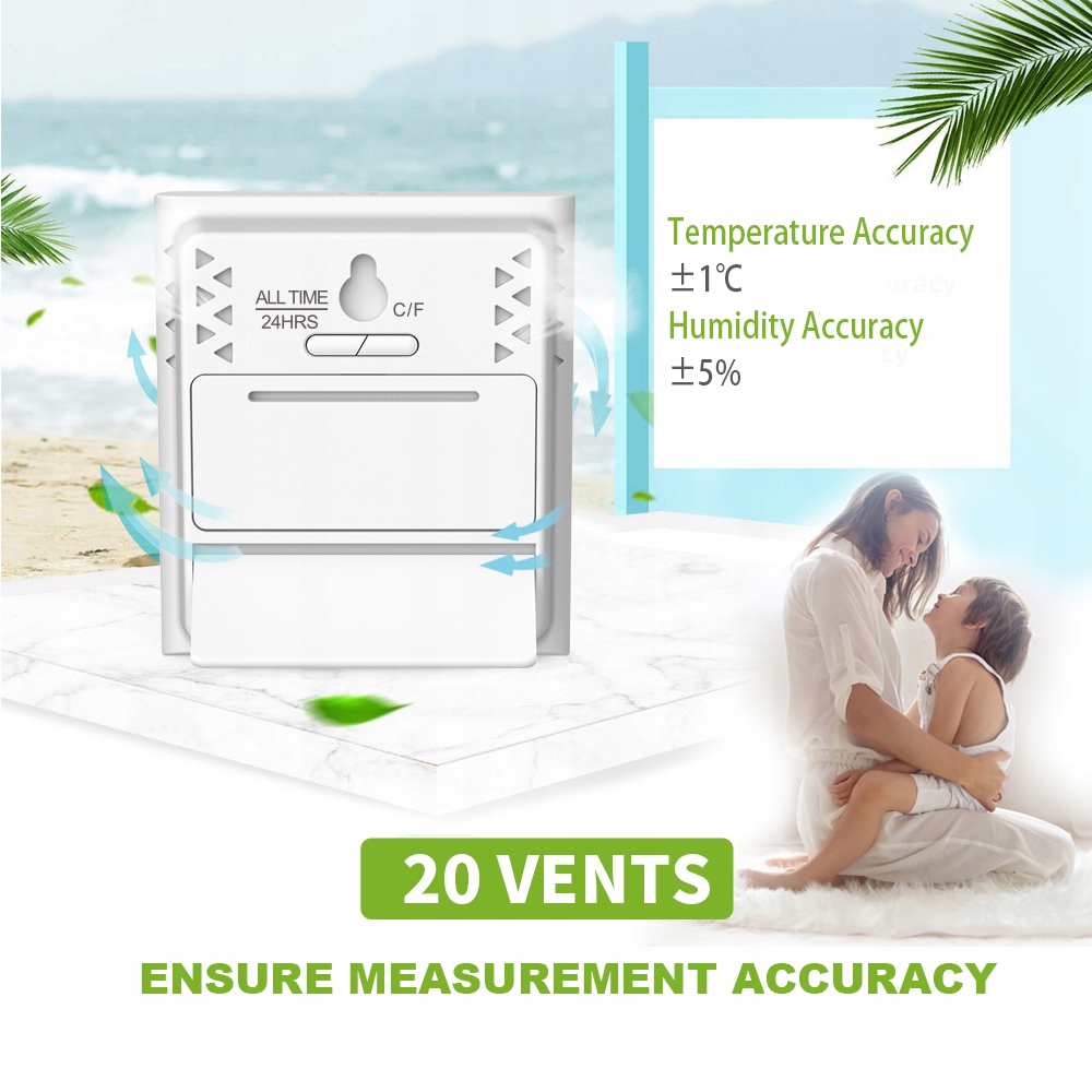 Цветные индикаторы температуры и влажности быстро указывают на состояние сухого/комфортного/влажного воздуха, уведомляя вас о правильной настройке увлажнителя или осушителя и проверяя его. вы всегда будете жить в максимально комфортных условиях.