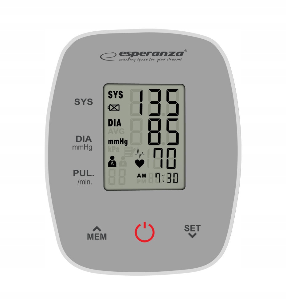 Esperanza Spirit Monitor - это усовершенствованное устройство, которое легко объединяет современные технологии, обеспечивая быстрые и точные измерения артериального давления.